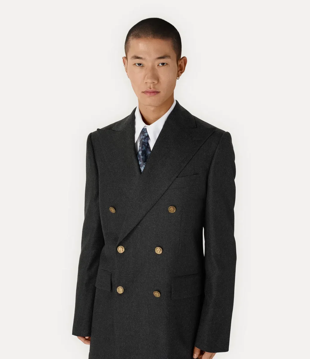 Kravatımız, markanın imza niteliğindeki küre motifinden ilham alan, cesur ve tekrarlanan ‘Logomania’ desenine sahiptir. Klasik sivri uca doğru daralan geniş bir şeritle tasarlanan bu parça, markanın geçmişi geleceğe bağlama felsefesini yansıtmaktadır.