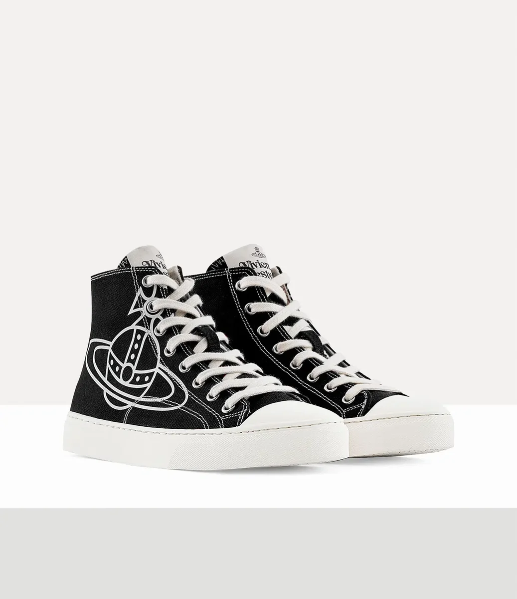 High-top Canvas plimsolls modelimiz, Vivienne’in geleneği geleceğe taşıma vizyonunun simgesi olan, markanın arşivinden alınan ‘Line Orb’ motifini tasarımında kullanıyor. Pamuklu kanvas kaplamalı bu model, dilinde dokuma etiketle süslenmiştir.
