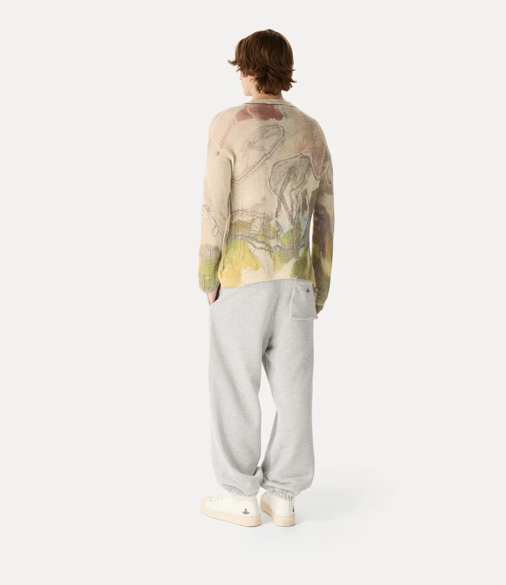 Kyle jumperımız yumuşak yünden üretilmiş ve tamamı ribana örgü ile örülmüştür. Sanatçı Dominic Myatt’ın bu sezonun “Paradise” adlı eserinden esinlenerek basılmış olan tasarım, ironik bir ütopya vizyonunda çöp ile kaplı bir dünyayı tasvir ediyor. Tasarım, göğsün sol tarafında kırmızı ve mavi ombré efektli “Horses with Orb” motifiyle süslenmiştir.