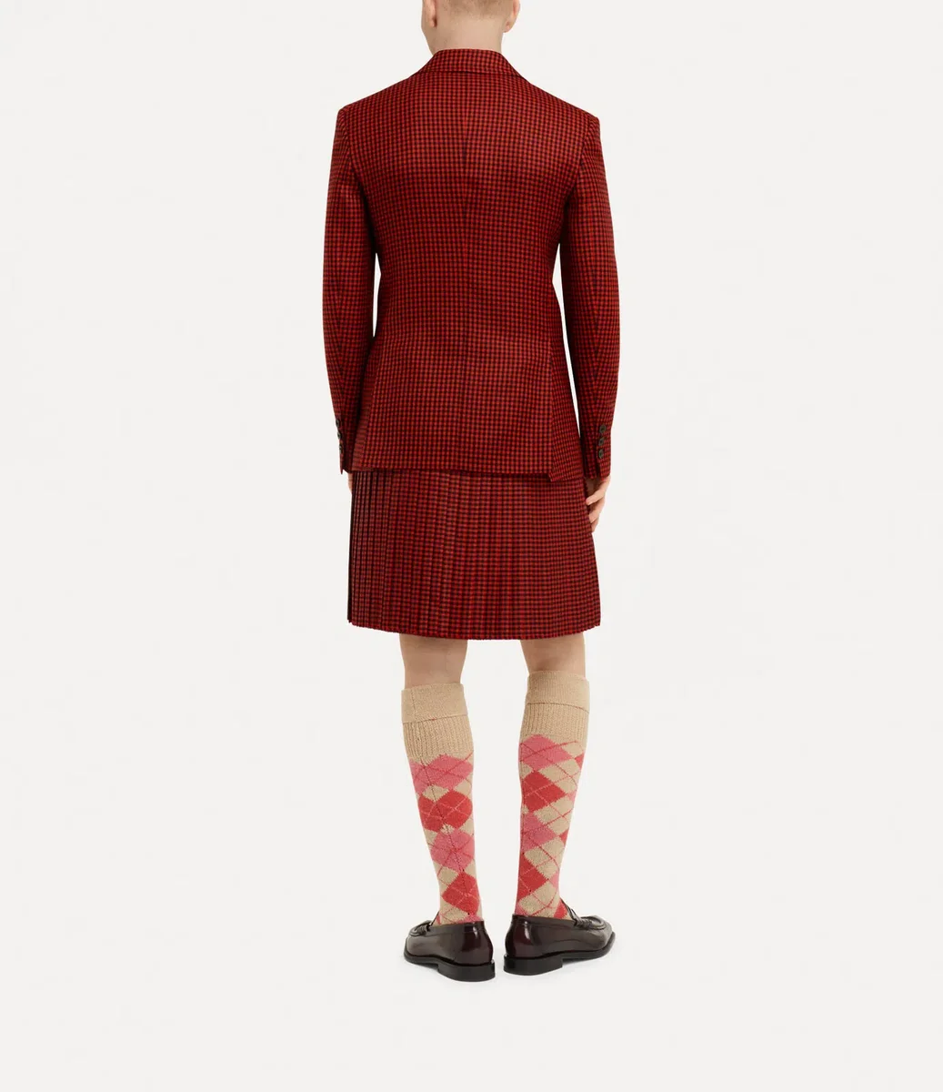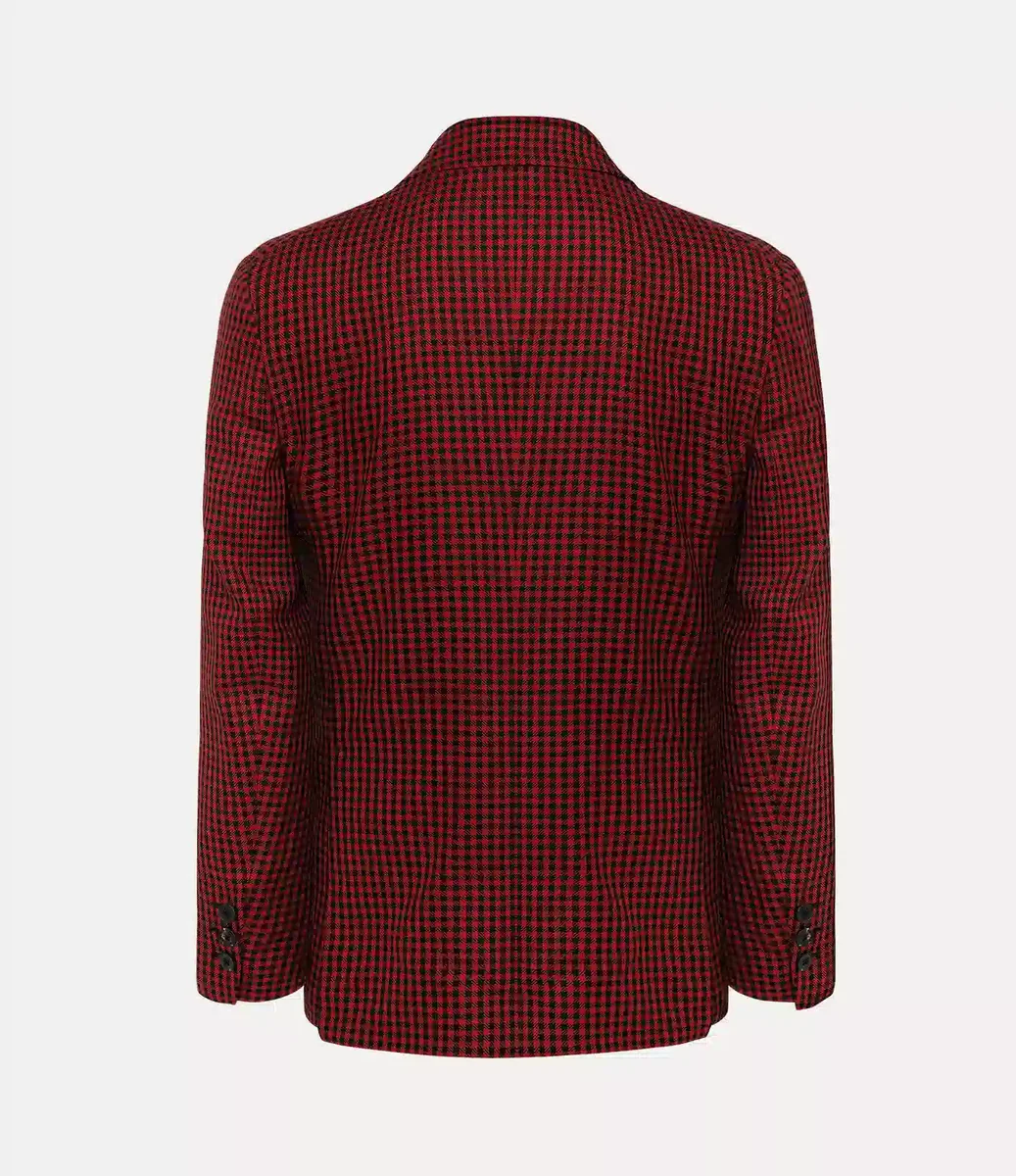 İmzamız olan Tek Düğmeli ceketimiz, bu sezonun canlı renklerde dokunmuş gingham yünüyle yeniden tasarlandı ve ön tarafında tek bir düğmeyle kapatılıyor. Keskin çentikli yakalarıyla çerçevelenen siluet, arka yırtmaçlı temiz bir etek ucu ile tamamlanıyor ve geleneksel orb jakarlı astarımızla tamamlanıyor.
