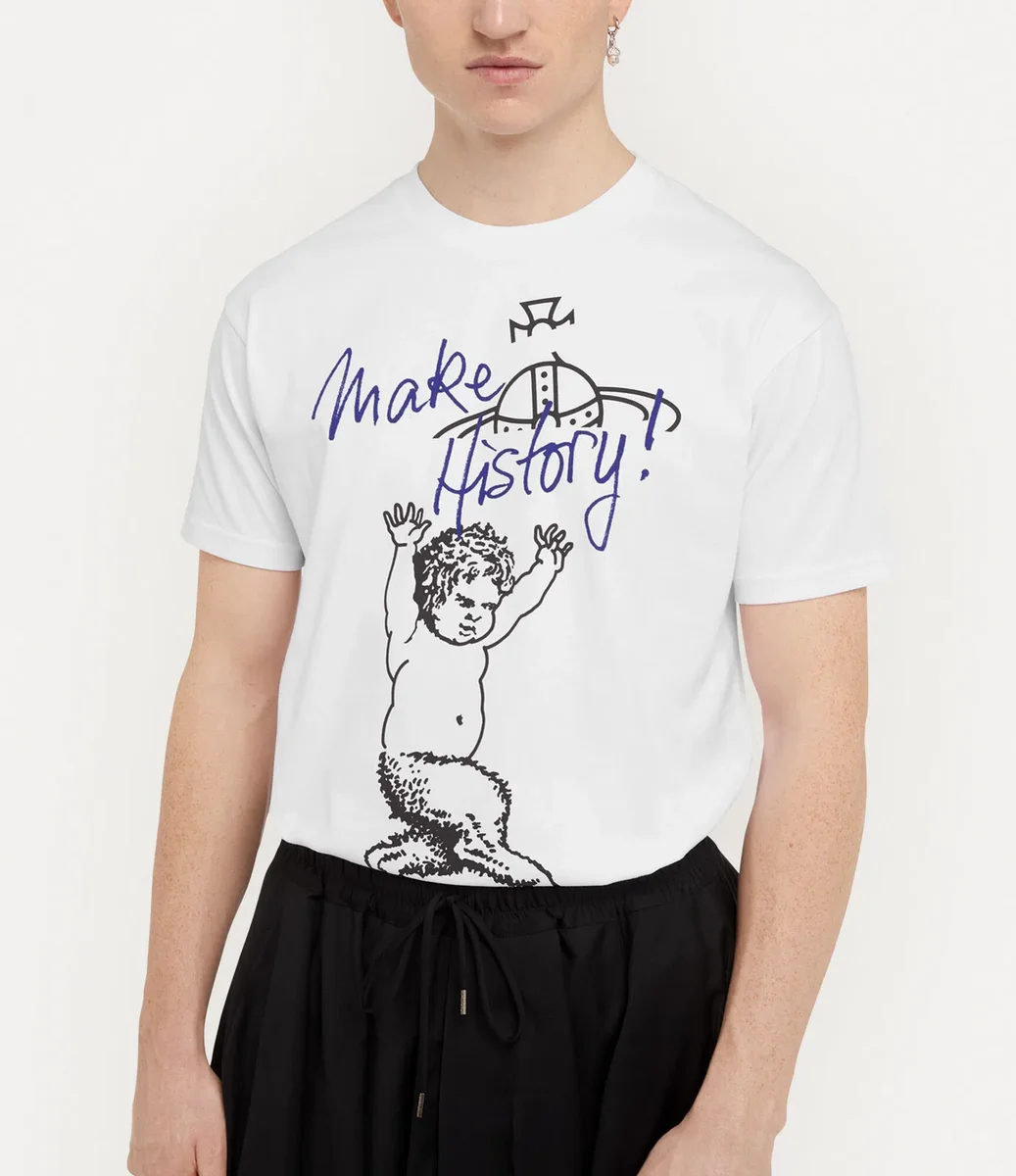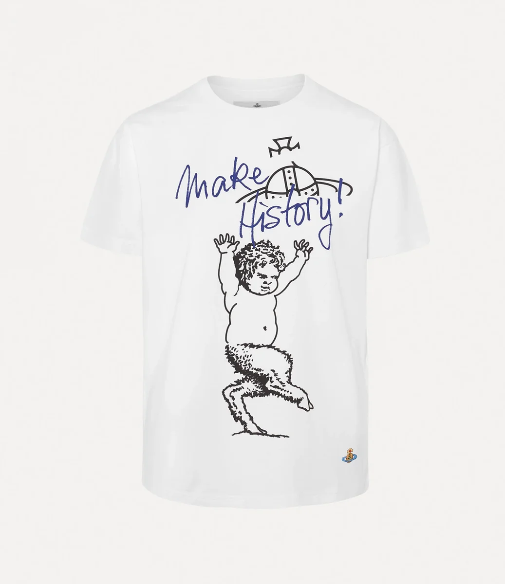 Vivienne Westwood Fawn Classic tişört, bisiklet yaka ve markanın ‘Fawn’ motifiyle ön tarafında ‘Make History’ sloganı baskıya sahiptir.