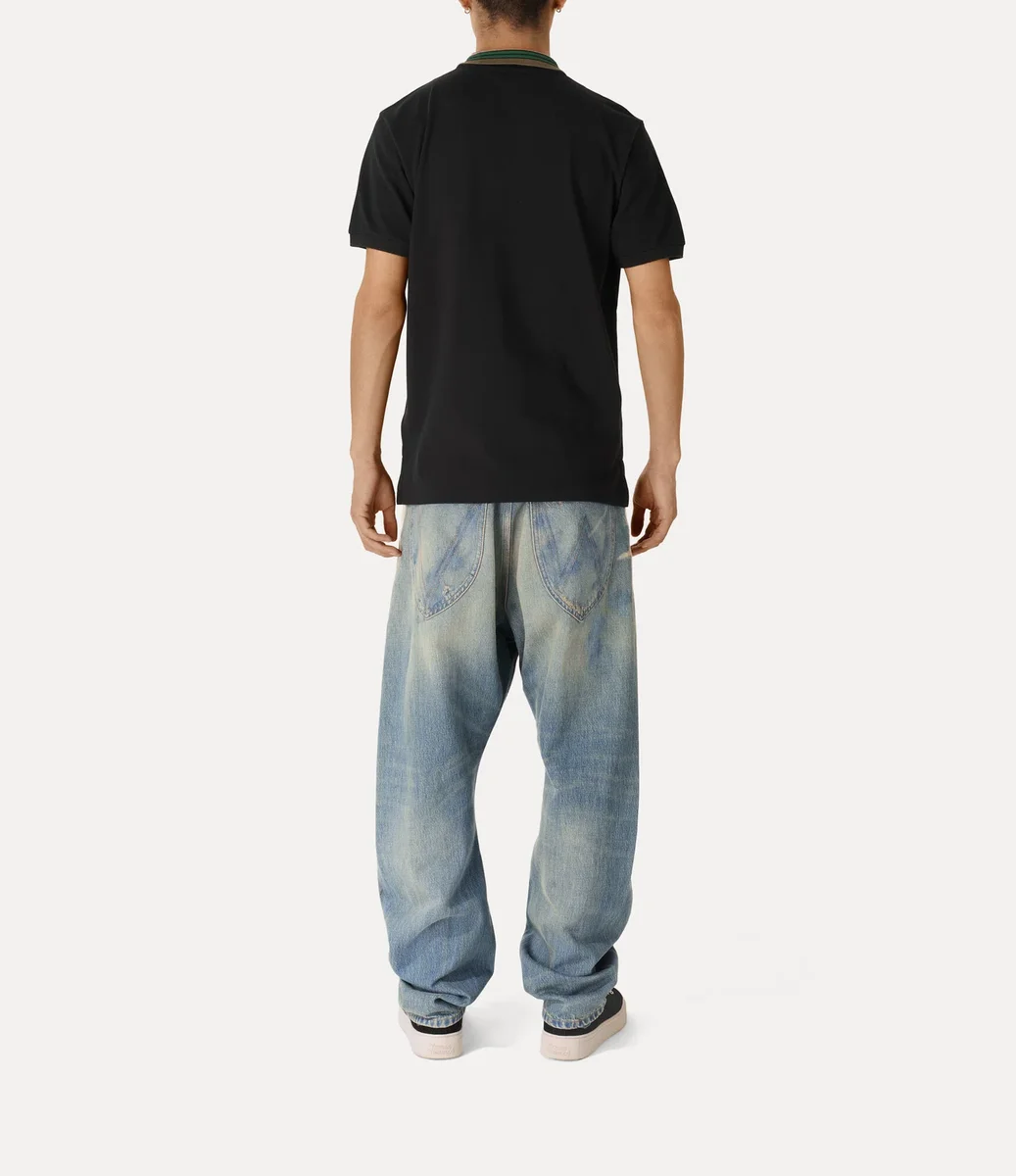 Klasik polo tişörtümüz, kontrast renkli yaka ve çok renkli şerit detaylarıyla dikkat çekiyor. Yumuşak pamuktan üretilen bu tişörtün sol göğüs kısmında, geleneği simgeleyen ve geleceği simgeleyen Satürn’ün göksel halkalarıyla çevrili bir orb motifinin nakışla işlendiği görülüyor.