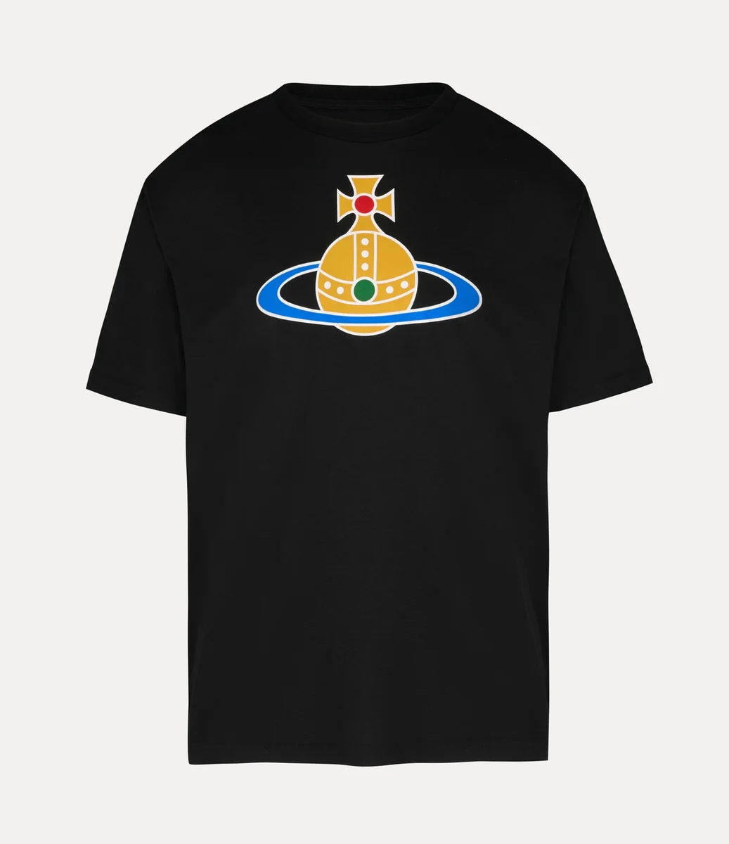 Oversized Orb Classic tişörtümüz, hafif pamuktan üretilmiş, bisiklet yaka, kısa kollu ve düz etekli bir modeldir. Göğüs kısmında, Vivienne’in geleneği geleceğe taşıma vizyonunu simgeleyen çok renkli küre motifli baskı bulunmaktadır.