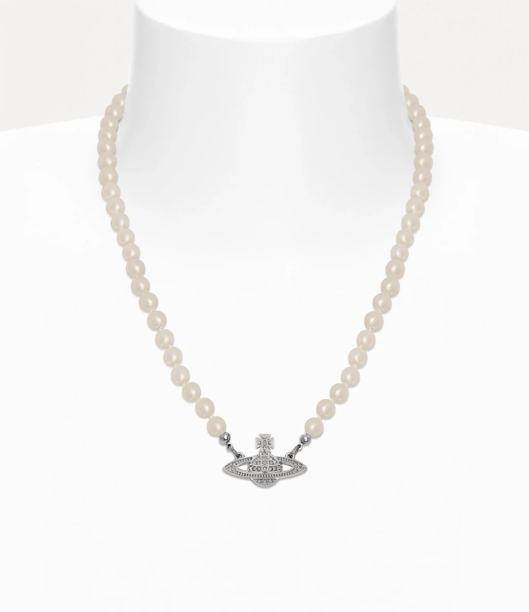 İnciler, markanın ikonografisinin vazgeçilmez bir unsuru olmaya devam ederek geçmişin lüksünü hatırlatır. The Man. Mini Bas Relief Pearl kolye, cam bazlı incilerden oluşan bir zincir ve tasarımın ortasında kristal kaplı düz bir küre ile Vivienne’in geleneği geleceğe taşıma vizyonunu yansıtıyor.