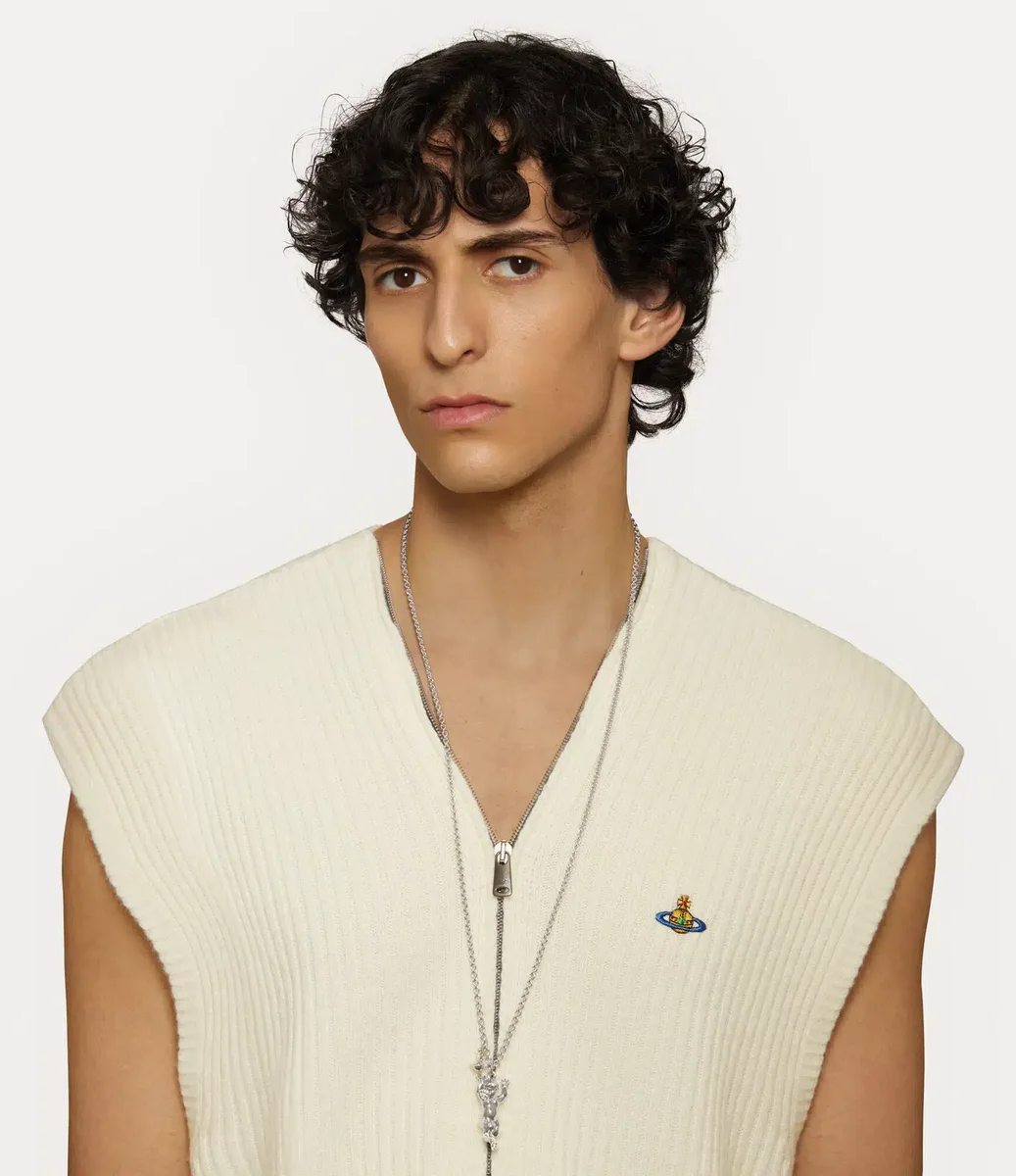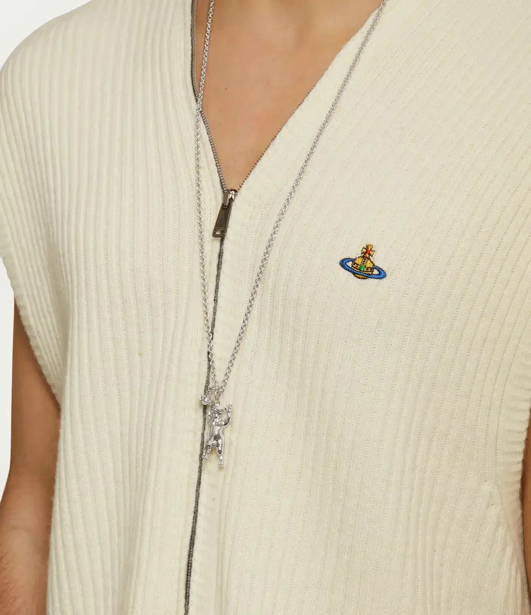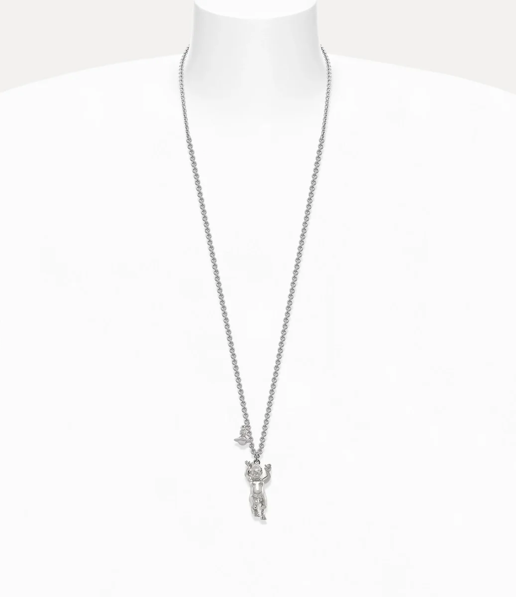 Man. Satyr Pendant kolye, merkezinde çarpıcı bir satyr motifine sahiptir ve Vivienne’in ikonik “Britain Must Go Pagan” döneminin (1987-1990) miras tasarımlarına saygı duruşunda bulunur. Parça, gümüş tonlu kaplama ile süslenmiştir ve zarif zincir boyunca markanın imza sarkıt küre motifini taşır, böylece markanın geçmişi geleceğe taşıyan felsefesini somutlaştırır.
