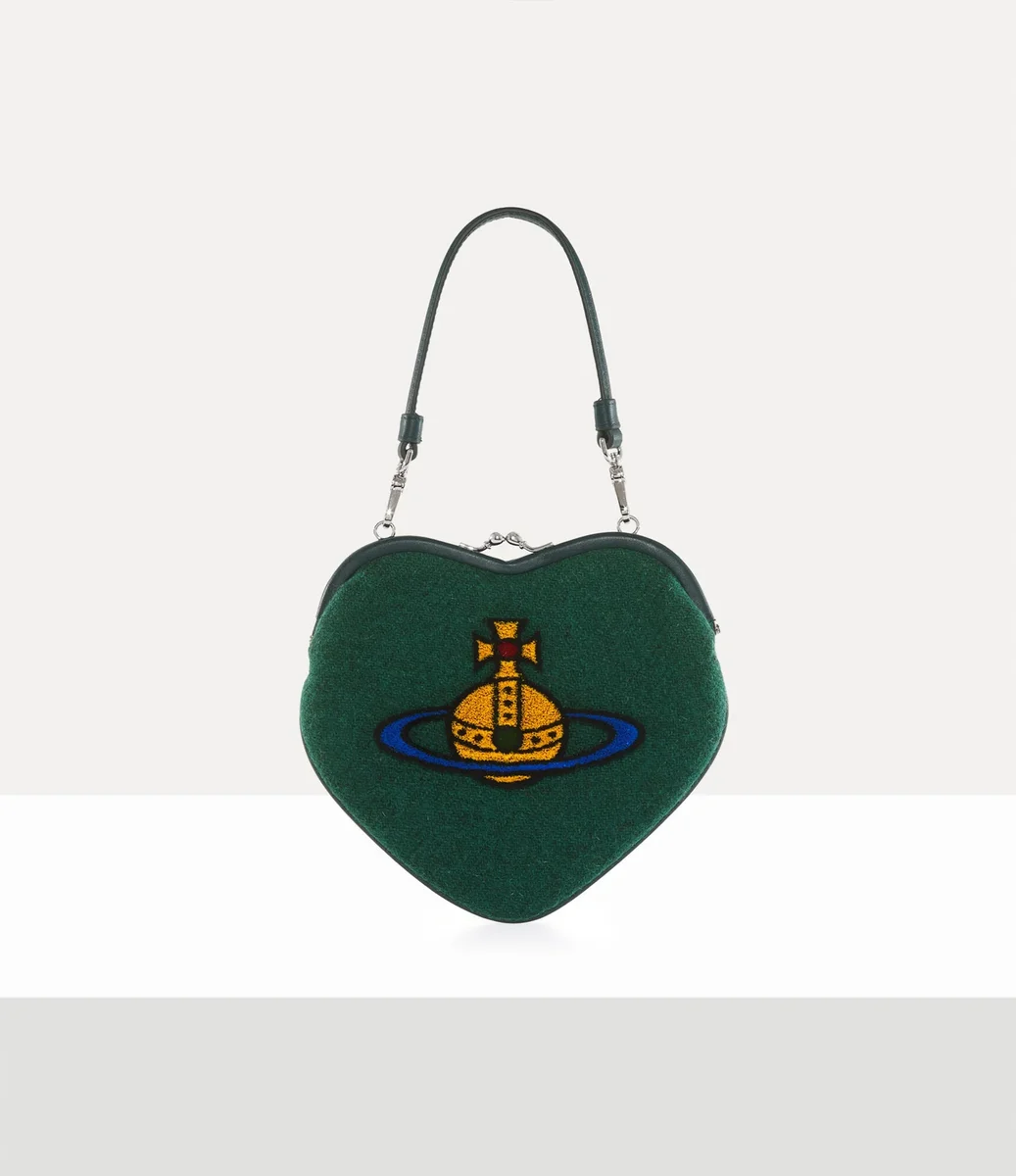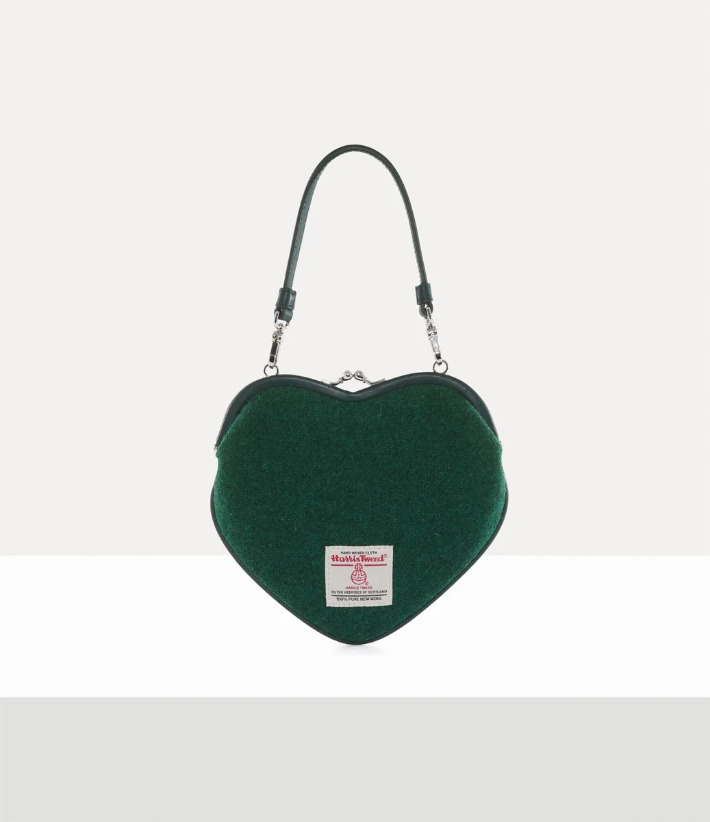 Belle Heart Frame çanta, Harris Tweed’in kendine özgü dokusunu yansıtmak için ustaca benekli düz yünle bu sezon geri dönüyor. Markanın klasik kalp şeklindeki siluetine sahip olan çanta, bu sezonun tüylü kaplamasıyla yeniden yorumlanan ikonik çok renkli küre motifiyle tamamlanıyor.