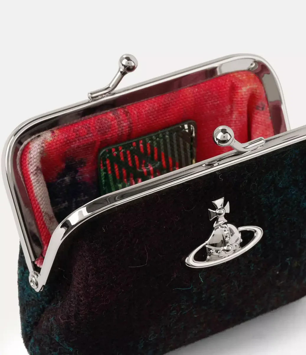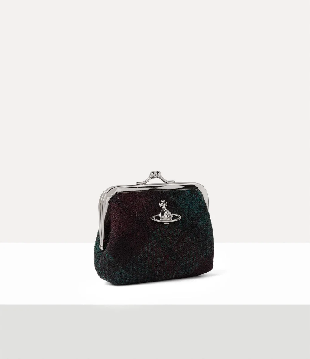 Çerçeve Bozuk Para Cüzdanımız, İskoçya’nın Outer Hebrides Adaları ve Lewis sakinleri tarafından el dokuması olarak üretilen, bu sezonun koyu renkli Harris Tweed kareli motifiyle süslenmiştir. Açık altın rengi çerçeve detayları ve zarif kiss-lock kapama mekanizmasıyla tamamlanan tasarım, 20. yüzyılın başlarındaki vintage bozuk para cüzdanlarını anımsatır.
