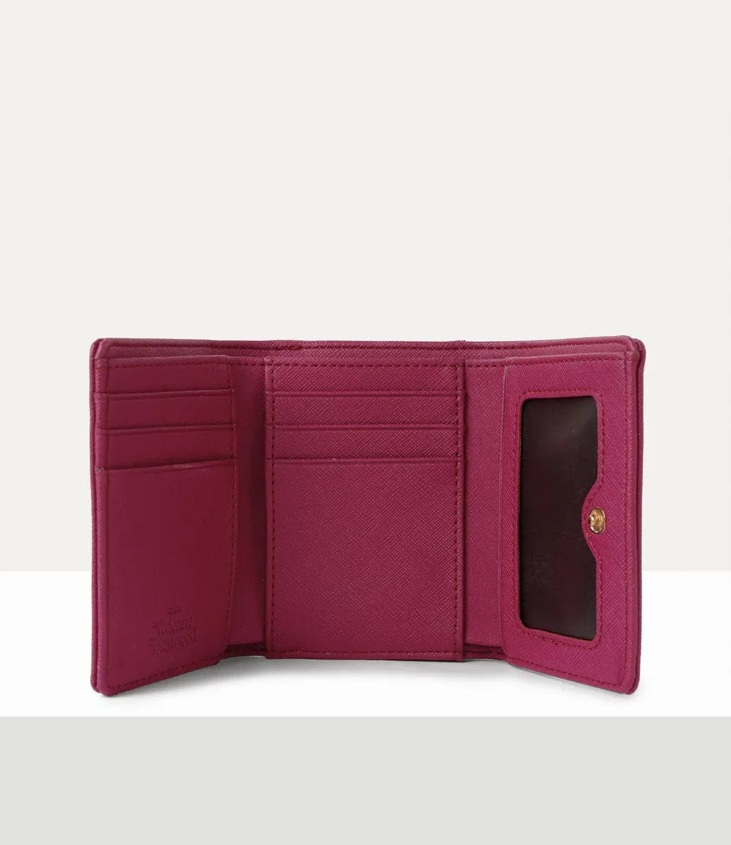 Small Frame cüzdanımız, klasik PU deri profiline sahiptir ve tasarımın tamamında saffiano kabartma kaplama bulunur. Önünde altın rengi kabartma küre motifi ile süslenmiş olan bu parça, Vivienne’in geleneği geleceğe taşıma vizyonunu yansıtmaktadır.