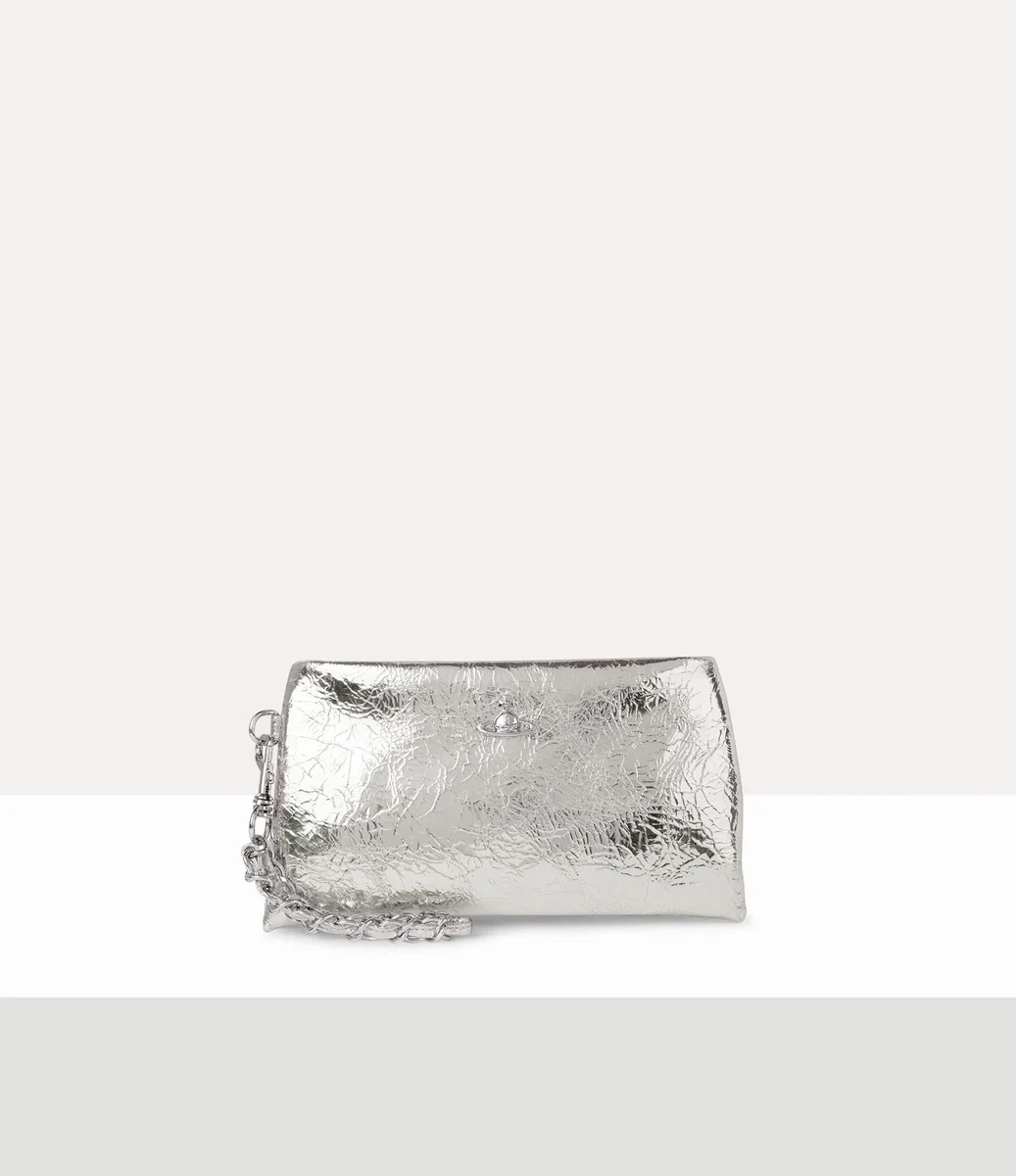 Sadie bileklik çantası, markanın zengin arşivinden esinlenerek metalik kırışık efektli deri ile yeniden tasarlandı. Tasarım, gümüş tonlu zincir ile tonlu deri detayların iç içe geçmesiyle oluşturulmuş ve ön kısmında Vivienne’in geleneği geleceğe taşıma vizyonunun simgesi olan cilalı küre motifiyle tamamlanmıştır.
