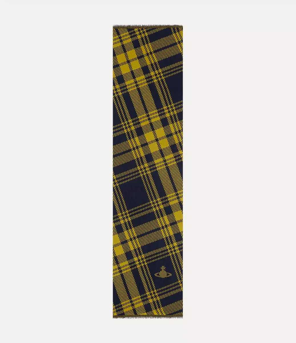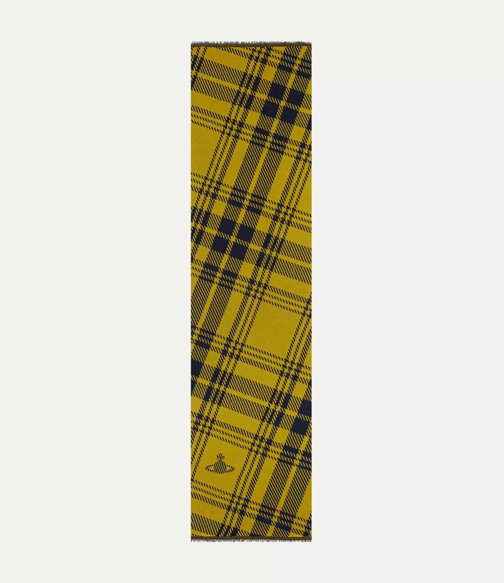 Eşarbımız yumuşak yünden üretilmiş ve geleneksel İskoçya Highlands kıyafetlerinden esinlenerek tartan motifiyle dokunmuştur. Klasik dikdörtgen şekle sahip olan bu parça, hafif saçaklı kenarları ve markanın “Silhouette Orb” amblemiyle tamamlanmıştır.