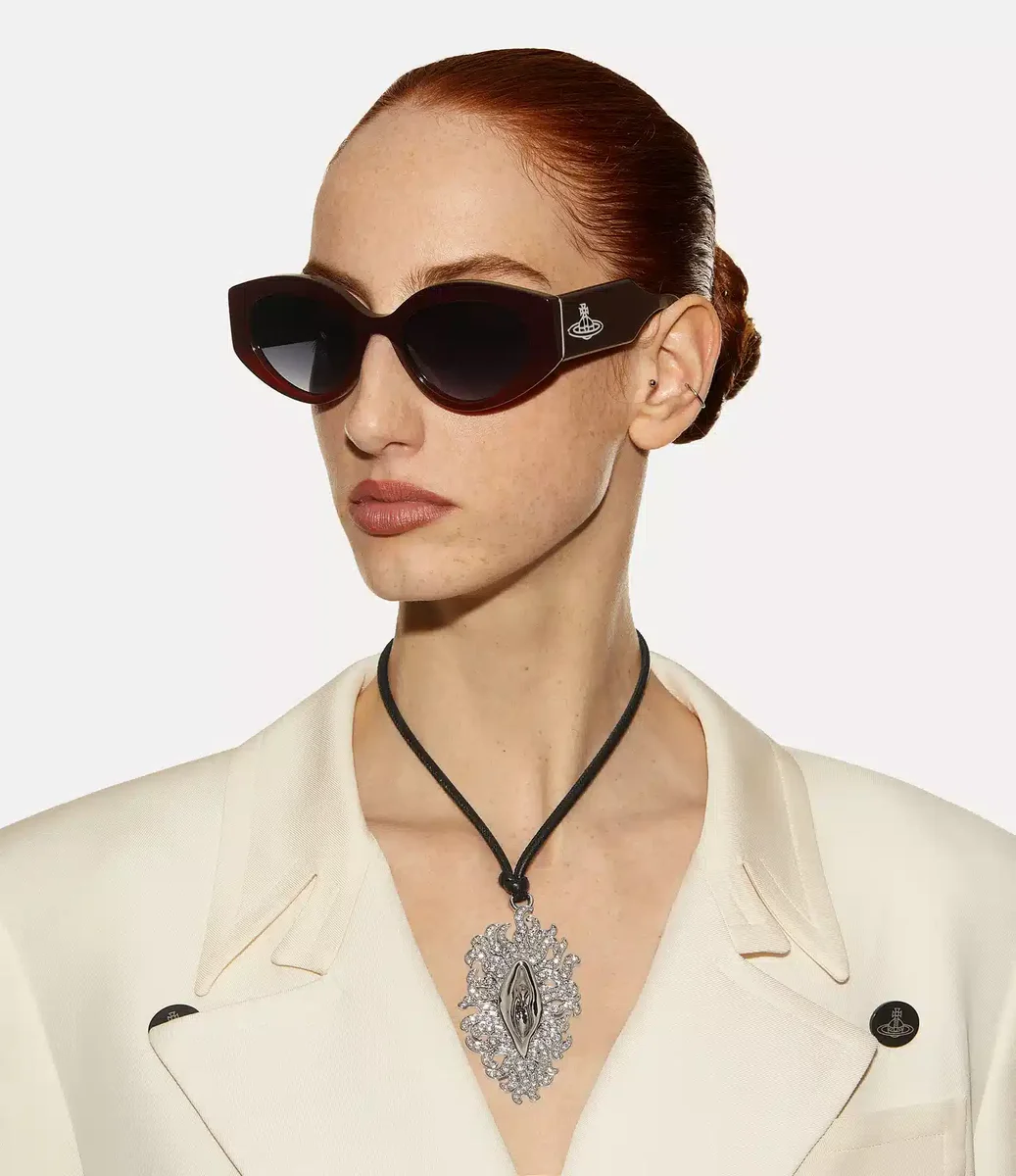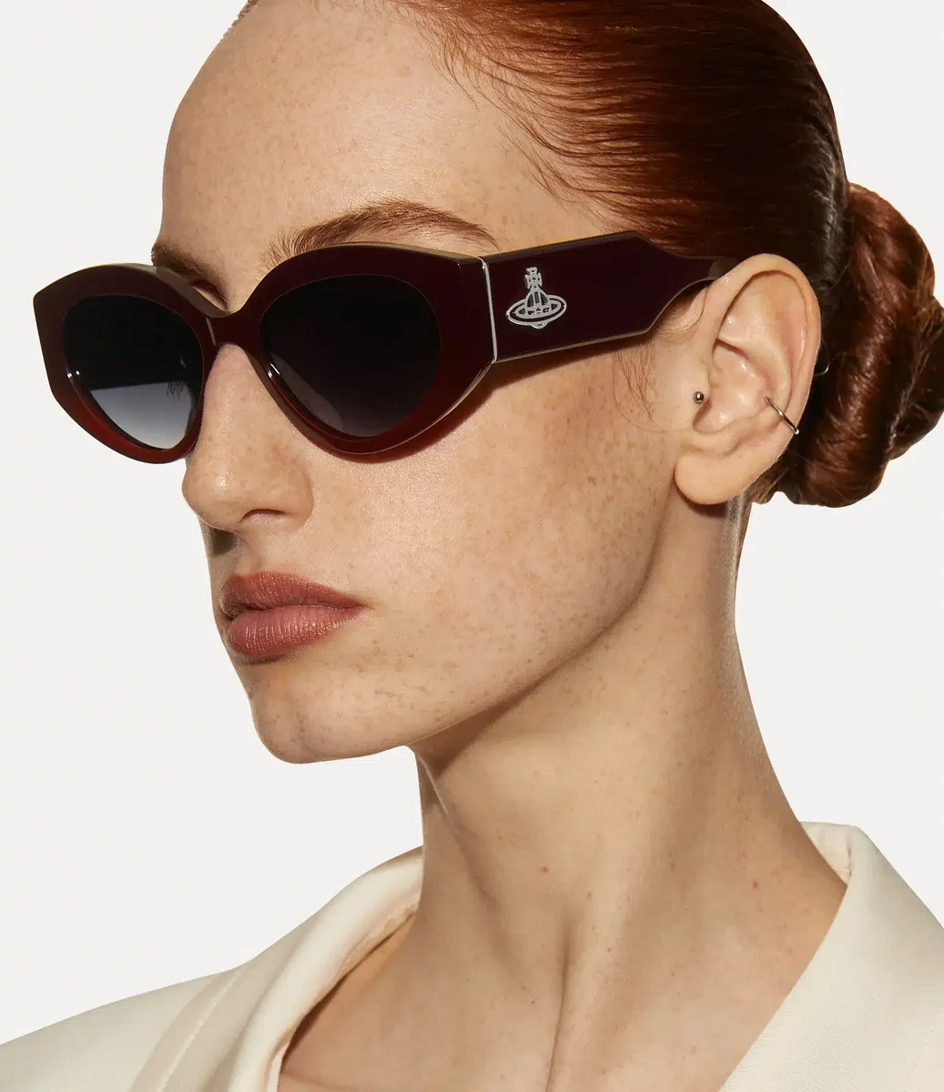 Jackie güneş gözlüğü, vintage fotoğraflar ve 1980’lerin underground ikonlarından ilham alan zamansız bir siluete sahiptir. Gradyan UV koruyucu camlara sahip bu model, Vivienne’in geleneği geleceğe taşıma vizyonunu somutlaştıran, şakaklarda iki boyutlu metal küre ile tamamlanmıştır.