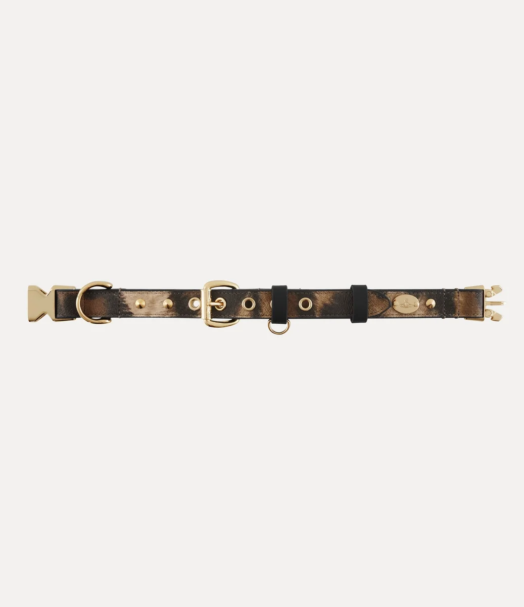 Köpek tasmamız, markanın 2001 Sonbahar-Kış Gold Label koleksiyonu “Wild Beauty”den ilham almıştır ve koleksiyonda orijinal olarak kullanılan yumuşak Steiff kumaşını yeniden yorumlayan cesur leopar deseniyle süslenmiştir. Klasik altın rengi donanımla tamamlanan bu parça, güvenli toka kapamalı cilalı deliklere sahiptir.