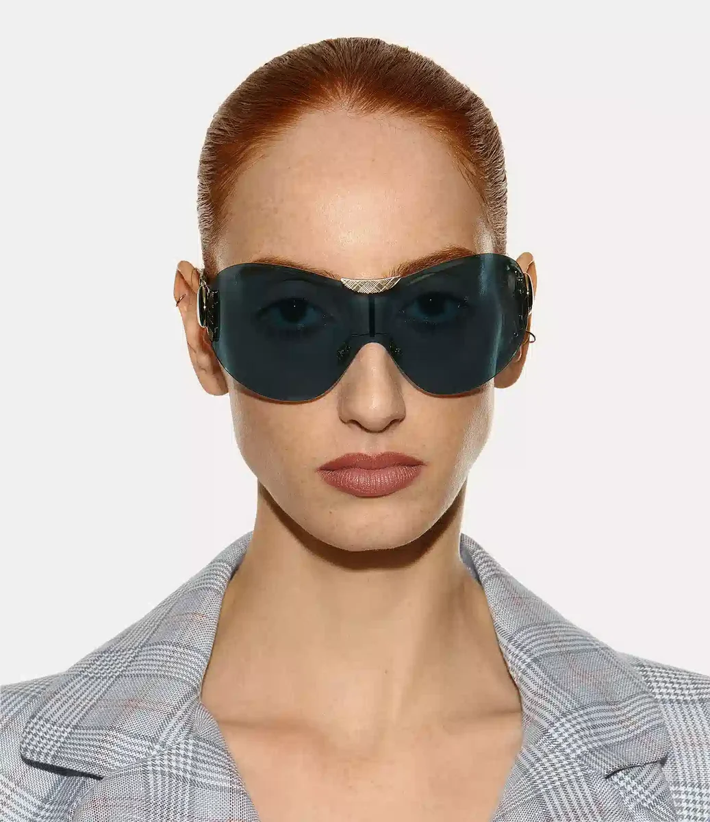 Efsanevi şarkıcı Tina Turner’ın adını taşıyan Tina güneş gözlüğü, Studio 54’ün göz alıcı ikonlarını anımsatan abartılı, vintage esintili bir siluete sahiptir. UV koruması sağlayan koyu mavi camlarla tamamlanan bu model, Viktorya döneminin hatıra mücevherlerinden ilham alan, her bir sapında el boyaması emaye küreye sahiptir.