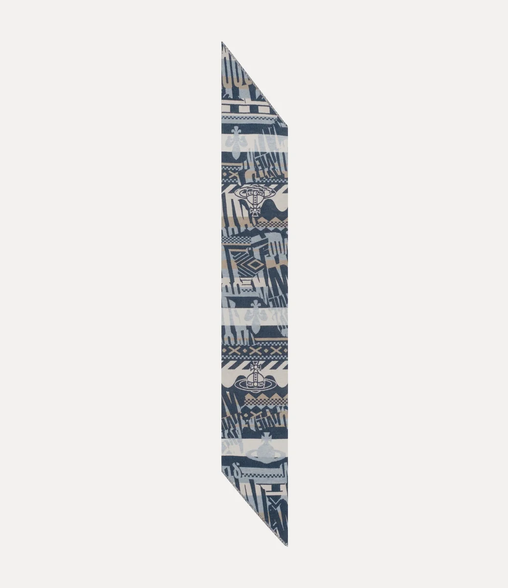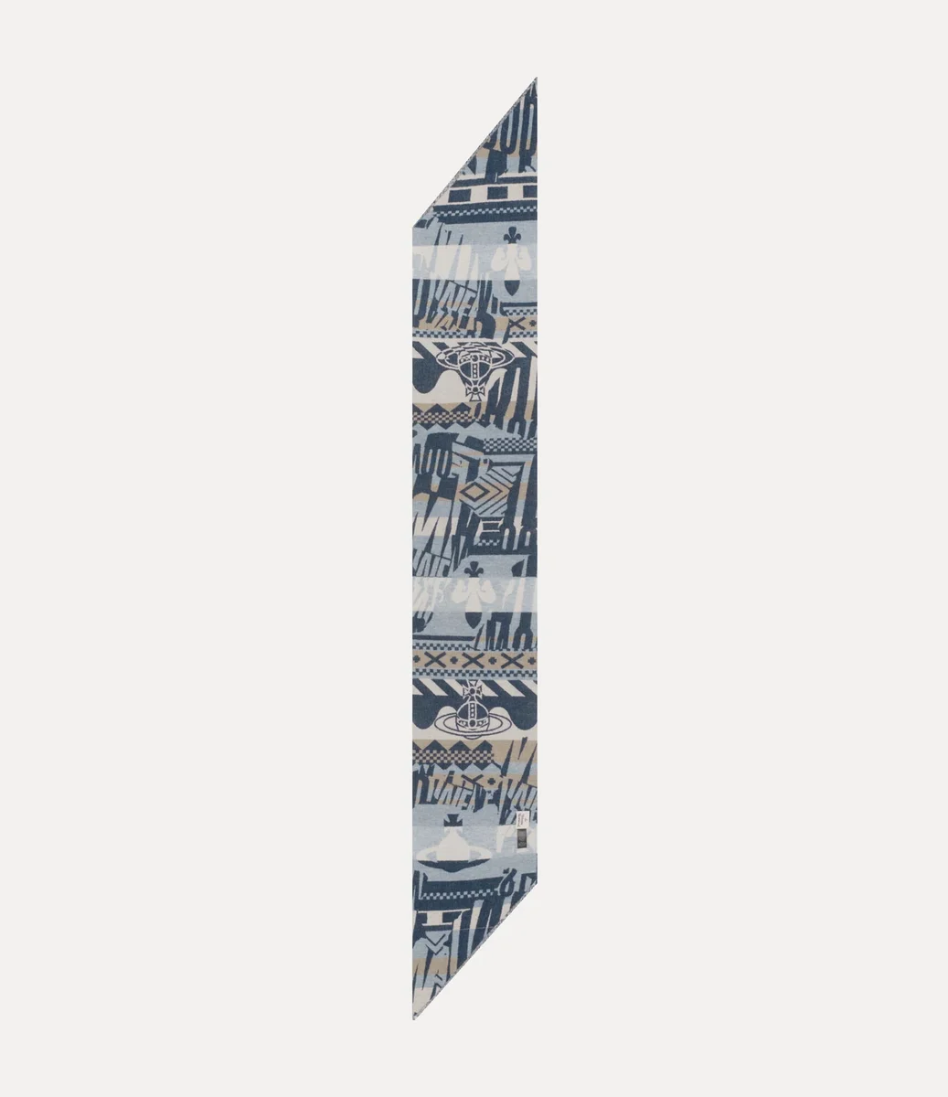 İki Noktalı Eşarp, markanın imza niteliğindeki “İki Nokta” tasarım sistemini kullanarak asimetrik kenarları ile ayırt edici bir siluet yaratır. Bu sezonun Broken Fair Isle jakarını kullanır ve ikonik marka motiflerini ve klasik “Vivienne Westwood” yazısının ortaya çıktığı hafif soluk bölümleri içerir.