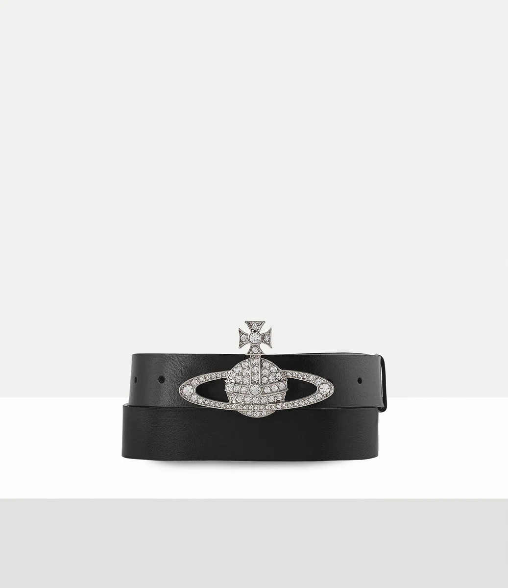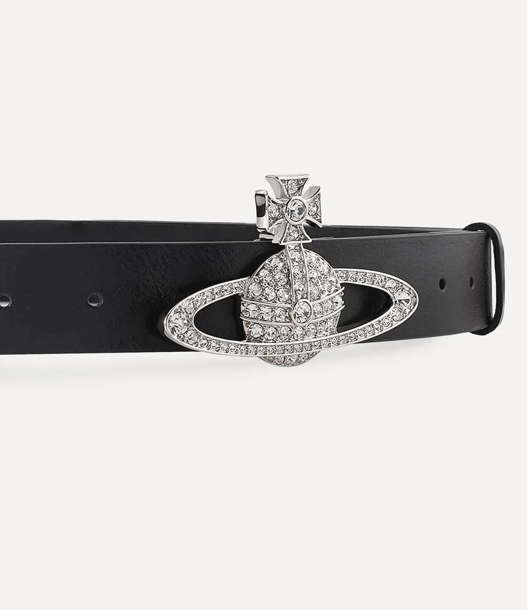 Evimizin imza niteliğindeki küre motifi, Vivienne’in geleneği geleceğe taşıma vizyonunu yansıtıyor. Bu sezon, Medium Bas Relief kemerin tokasında iki boyutlu bir küre silueti yer alıyor. Bu siluet, parlak beyaz kristallerle süslenmiş ve gümüş tonlu metal donanım detaylarıyla tamamlanıyor.