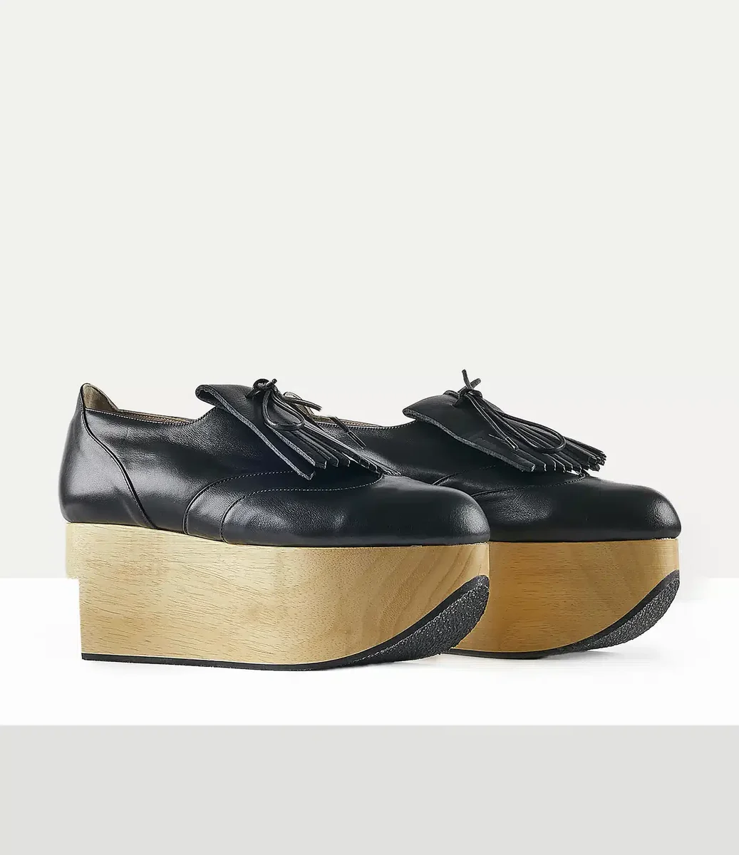 Rocking Horse Golf ayakkabıları, klasik İngiliz golf ayakkabılarından ilham alır ve karmaşık dekoratif üst dikişler ve bağcıkları zarif bir şekilde gizleyen kendine özgü deri saçak detayları ile öne çıkar. Tasarım, kavisli ön kısmı ve imza niteliğindeki kesik detayları ile karakterize edilen kontrastlı ahşap platform tabanlarla daha da zenginleştirilmiştir. Bu unsurlar ilk olarak 1987-88 Sonbahar-Kış ‘Harris Tweed’ koleksiyonunda tanıtılmıştır.