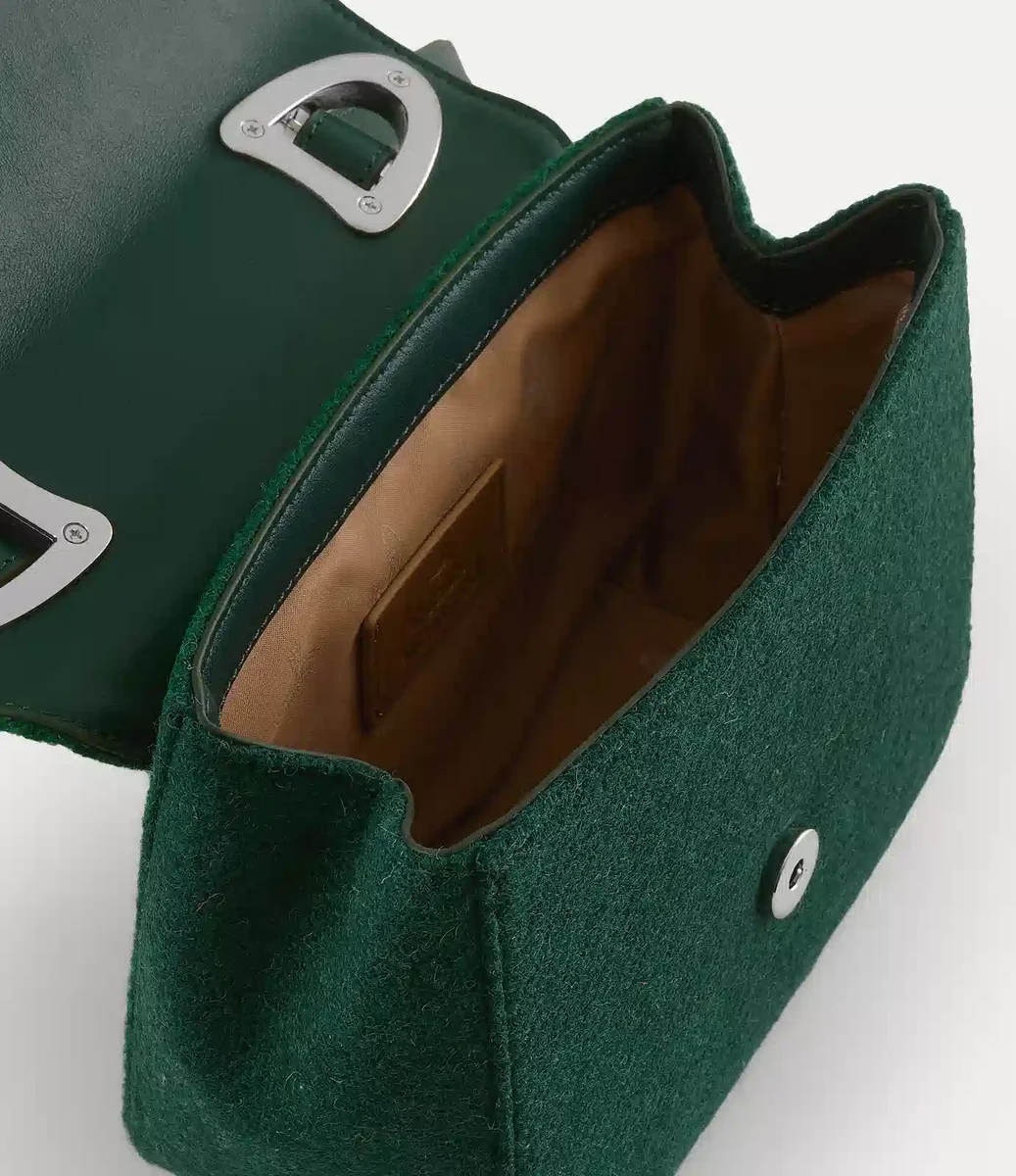 Linda Medium crossbody çanta, Harris Tweed’in imza niteliğindeki dokusunu elde etmek için ustaca benekli düz yünle bu sezon geri dönüyor. İskoçya’nın Highlands bölgesinin zengin ve çeşitlilik dolu manzarasını yansıtan yumuşak, toprak tonlarında sunulan tasarım, bu sezonun tüylü kaplamasıyla yeniden tasarlanan ikonik çok renkli Orb motifiyle tamamlanıyor.