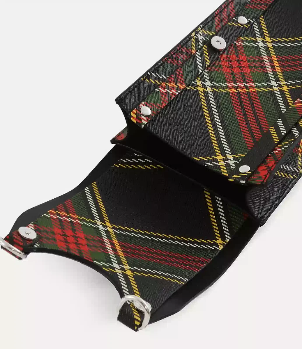 Max Mini Crossbody çantamız, 1995 İlkbahar-Yaz koleksiyonumuzdaki “Erotic Zones” koleksiyonunu anımsatan, bondajdan ilham alan unsurlar ve gümüş tonlu metal detaylarla tamamlanmıştır. Bu parça, canlı “Chelsea” tartan deseniyle süslenmiş ve ön kapağında “Line Orb” motifiyle tamamlanmıştır.