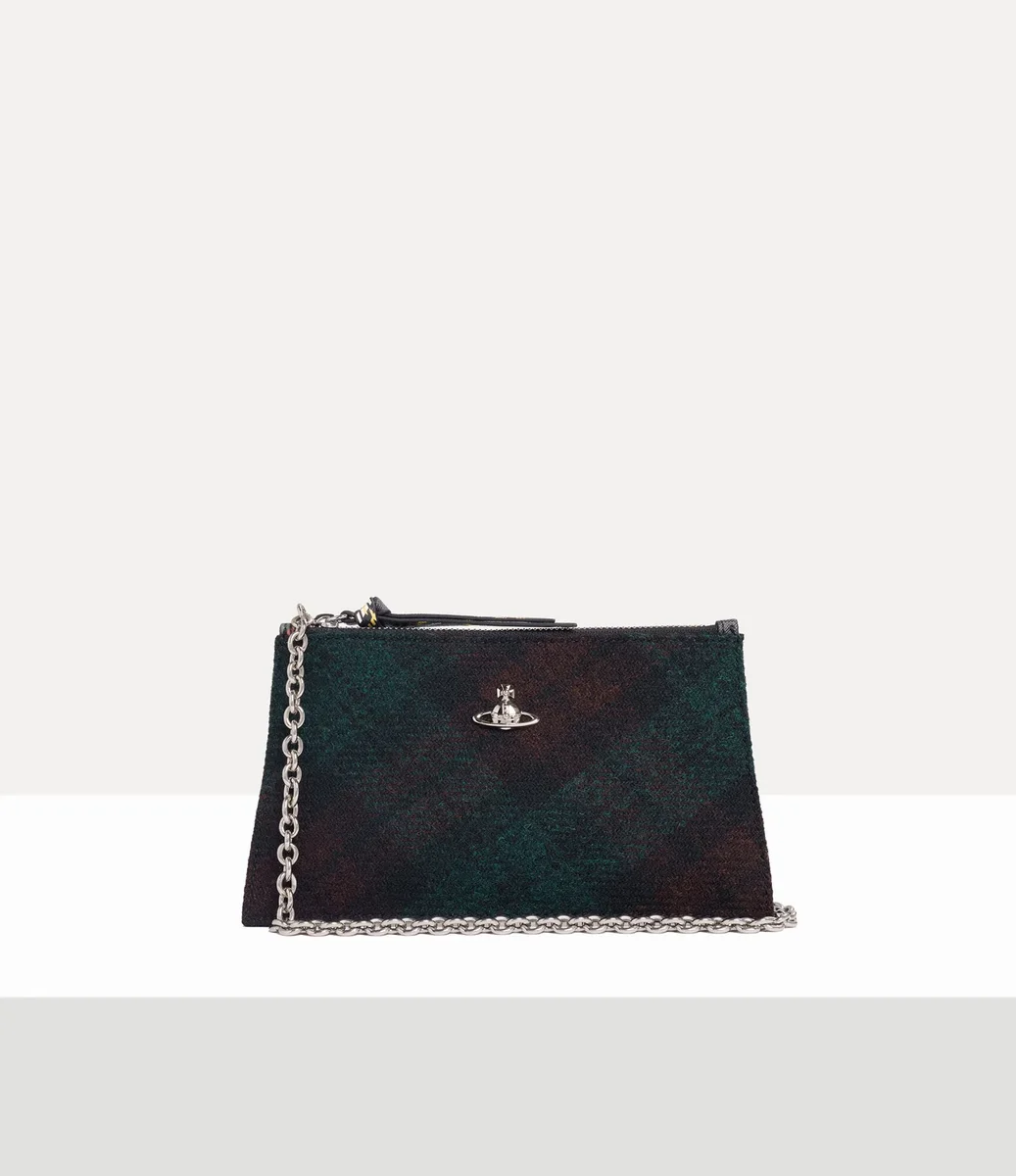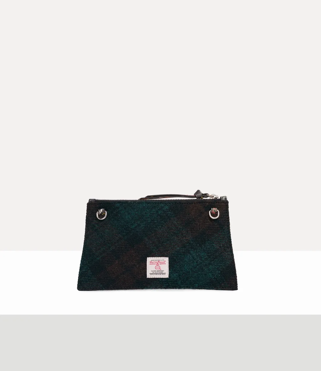 Küçük Düz Fermuarlı Clutch çantamız, İskoçya’nın Dış Hebrid Adaları sakinleri tarafından el dokuması olarak üretilen koyu tonlarda arşiv Harris Tweed kumaşından üretilmiştir. Çıkarılabilir zincir askılı tasarım, açıldığında markamızın imzası olan “Union Jack” astarını ortaya çıkarırken, ön kısmı el işlemesi küre süslemesi ile bezenmiştir.