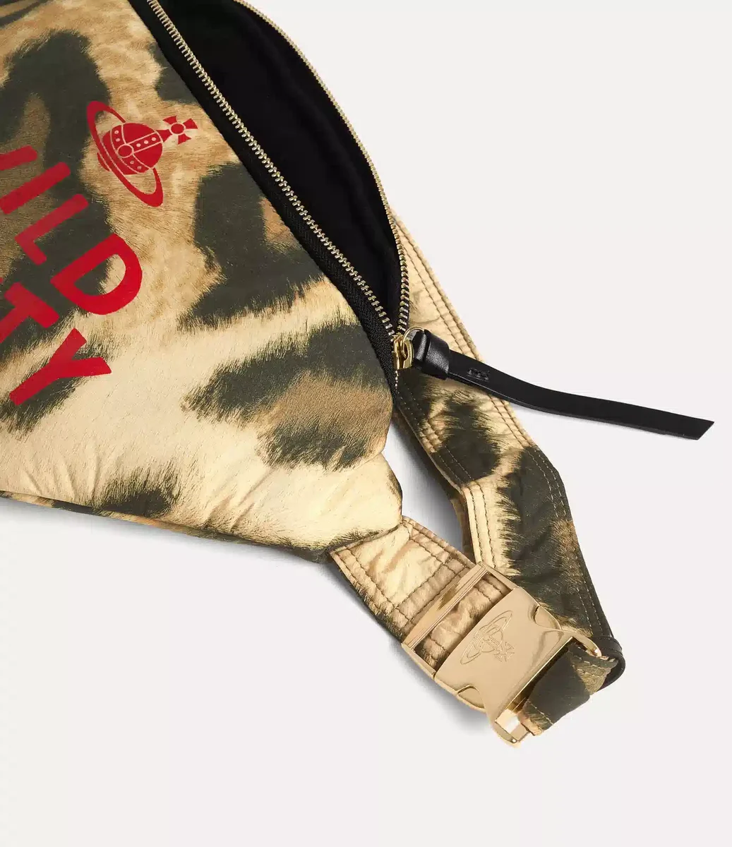 Ada body çantamız, 2001 Sonbahar-Kış Gold Label koleksiyonumuz “Wild Beauty”ye atıfta bulunan cesur leopar motifiyle basılmış hilal şeklindeki naylon bir profile sahiptir. Ön tarafına basılmış küre amblemi, canlı kırmızı renkli “Wild Beauty” sloganının üzerinde yer alırken, güvenli üst fermuar ve ayarlanabilir askı tasarımı tamamlamaktadır.