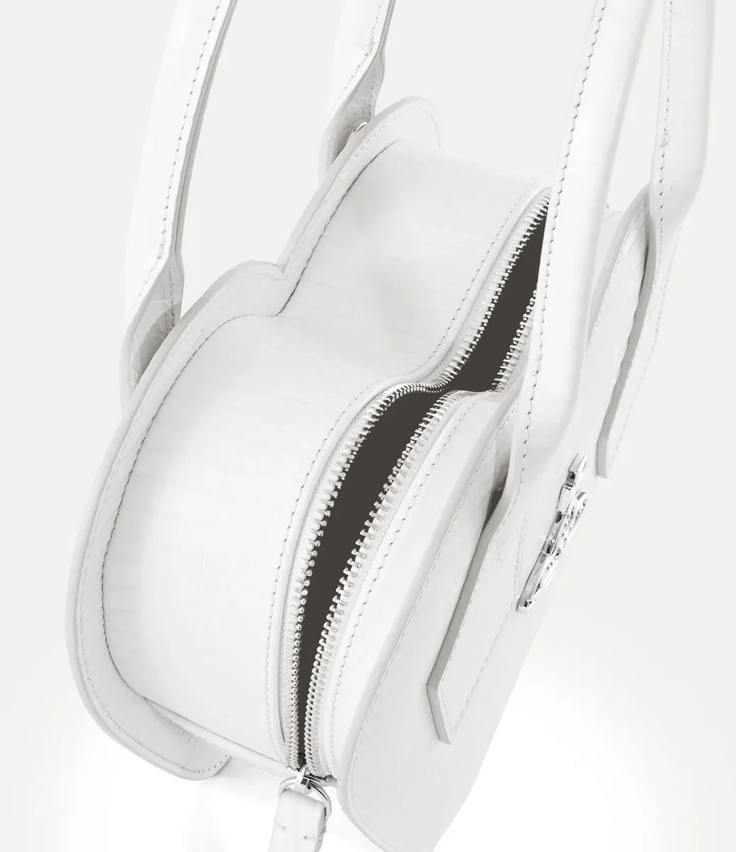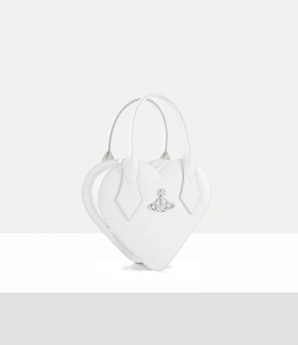Josephine Heart Crossbody çantamız, Vivienne’in insanlığa ve gezegene olan sevgisini anımsatan, markanın imza niteliğindeki kalp şeklindeki motifini yeniden yorumluyor. Timsah derisi efektli kabartmalı deriden üretilen çanta, klasik ‘Line Orb’ motifimizle süslenmiş, fermuarlı, şık tek bölmeli bir tasarıma sahiptir.
