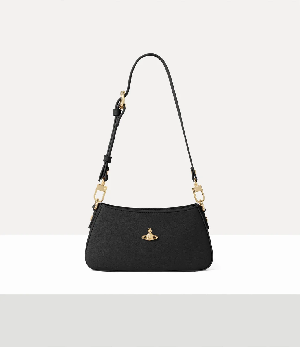 Tasha Omuz Telefon Çantası, saffiano kabartmalı dokuya sahip PU deriden üretilmiştir ve markanın imzası niteliğindeki metal donanımlarla süslenmiştir. Ön tarafında, geleneği temsil eden kabartma küre motifimiz, geleceği simgeleyen Satürn’ün göksel halkalarıyla çevrilidir.