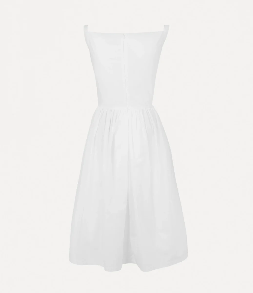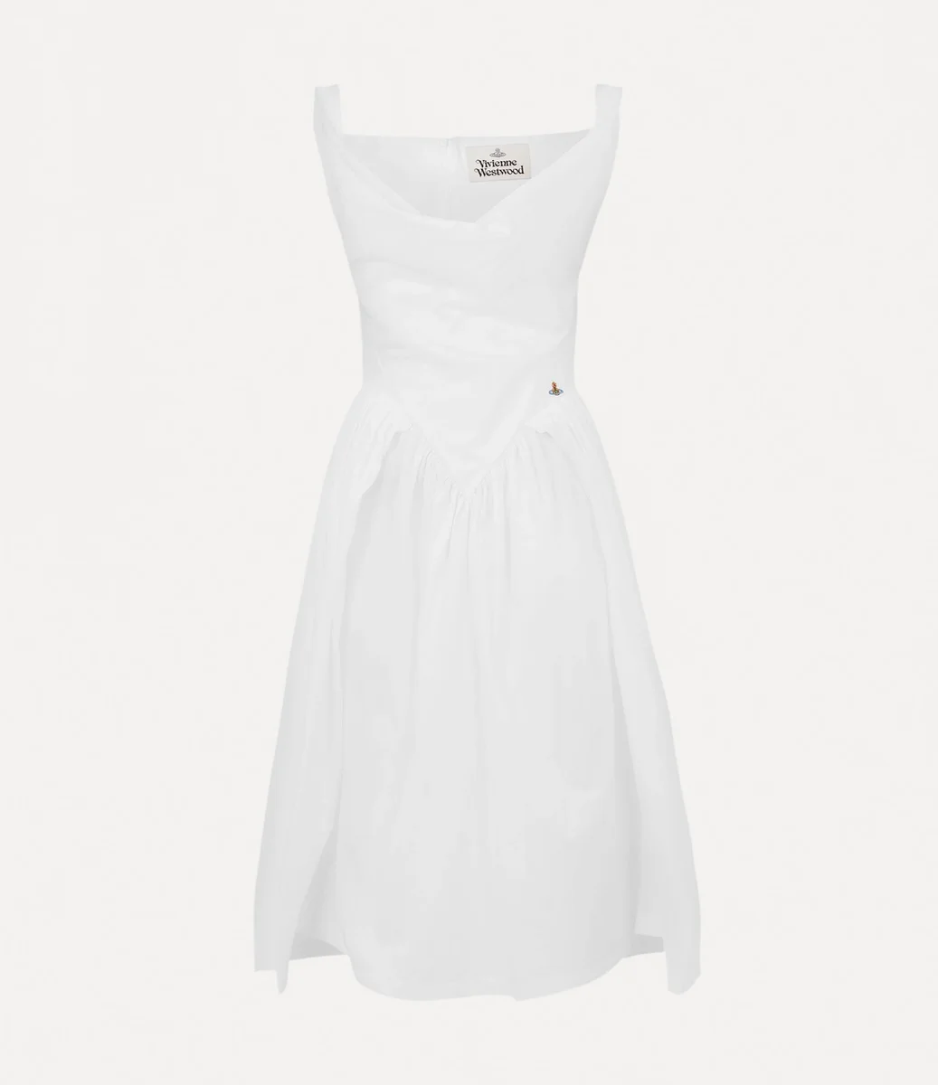 Pazar elbisemiz, ilk kez Vivienne Westwood İlkbahar-Yaz 1997 ‘Vive La Bagatelle’ koleksiyonunda görücüye çıkan bu sezon yeniden canlandırıldı. 18. yüzyıl salon kültürünün yüksek sosyete kadınlarından ilham alan bu parça, midi uzunlukta, kalçaya işlemeli küre detaylı, korseden ilham alan şekillendirilmiş bir siluete sahiptir.