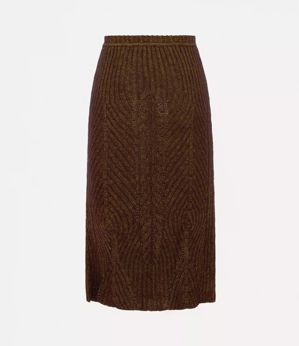 Vivienne Westwood Mary etek, ipek-mohair karışımından üretilmiştir ve balıksırtı ve ribana örgü dikişlerin karışımına sahiptir, A-line silueti ile tamamlanmıştır.