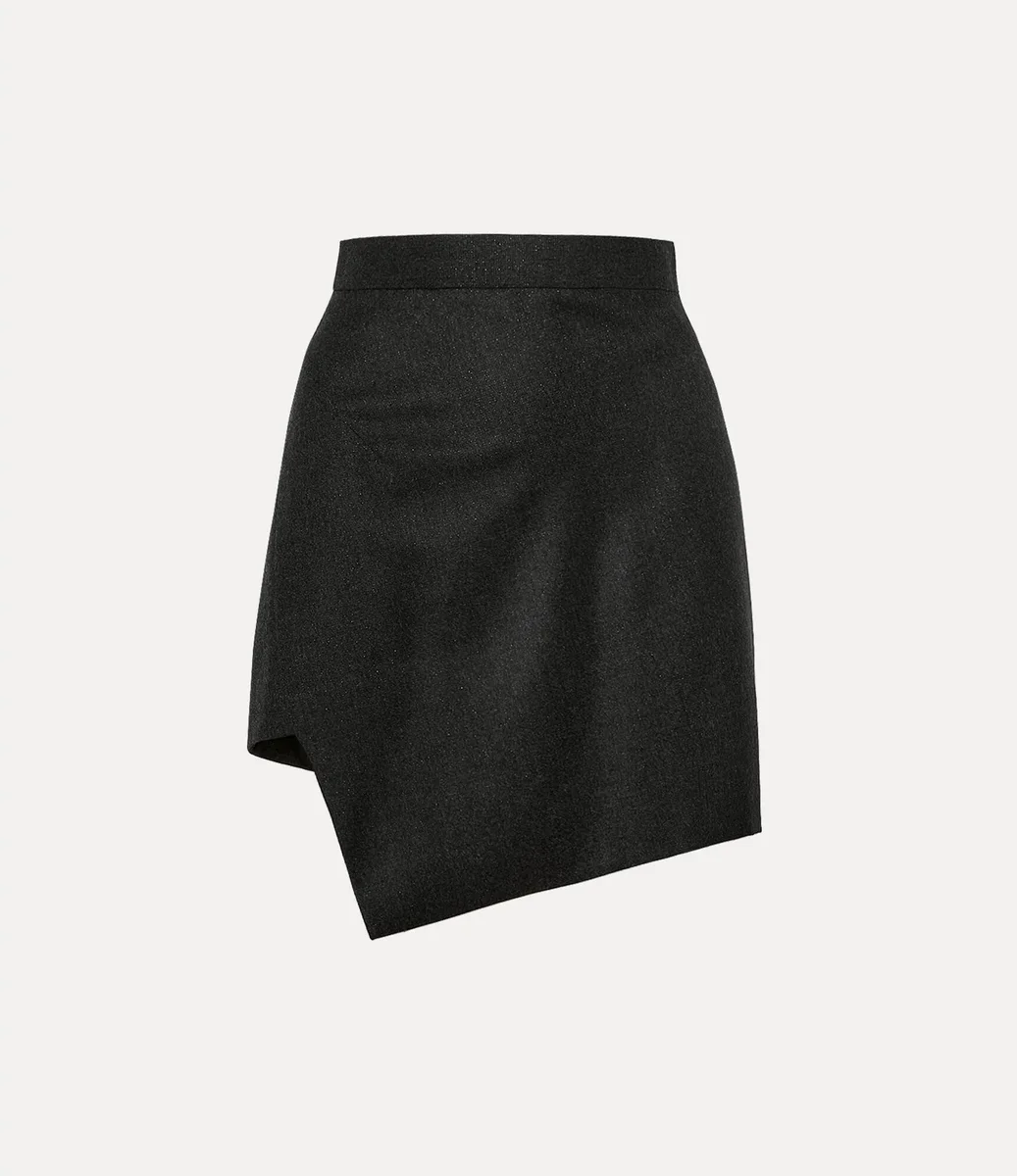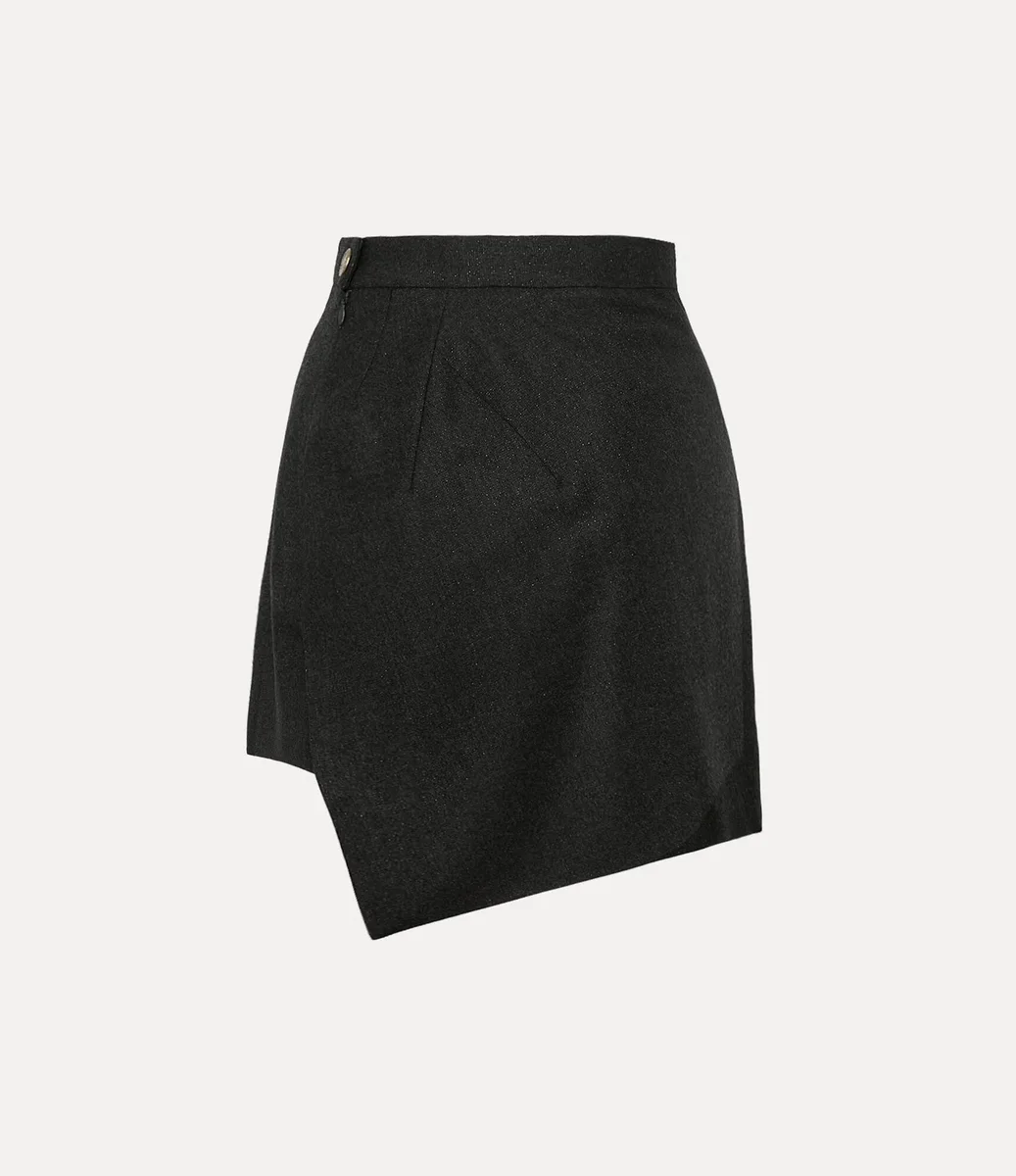 Mini Infinity eteğimiz, metalik fırçalanmış yüzeye sahip, hassas dokunmuş yün profiline sahiptir. Bu parça, gizli düğme ile bağlanan ön kısmı sarmalayan bir tasarıma sahiptir ve asimetrik A-line şekline sahip orta bel bandı ile tamamlanmaktadır.