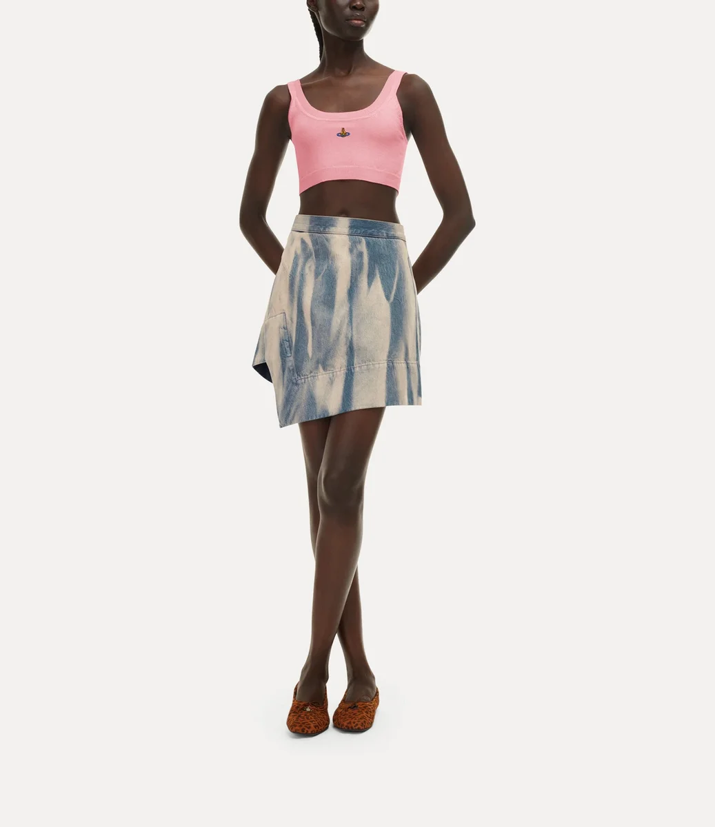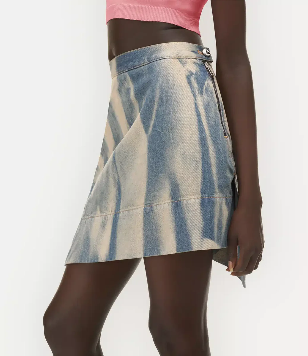 Mini Infinity eteğimiz, yumuşak pamuklu bir yapıya sahiptir ve soluk, ağartılmış yıkama ile süslenerek vintage esintili bir görünüm kazandırılmıştır. Bu parça, gizli bir düğme ile bağlanan ön kısmı ve asimetrik A-line şekline sahip orta bel kısmı ile tamamlanmaktadır.