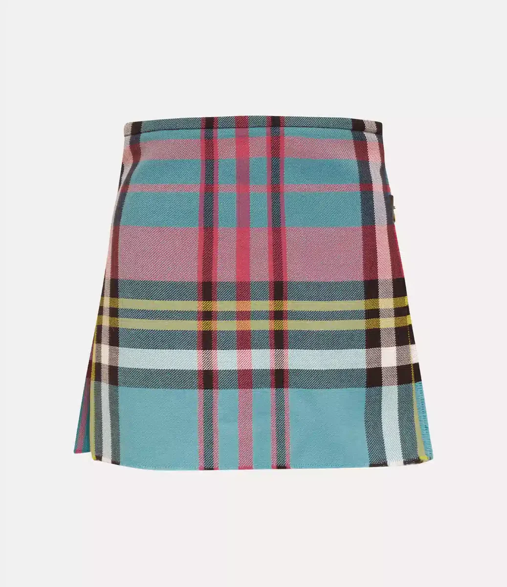Worlds End Mini Kilt, ilk olarak Vivienne Westwood 1993 Sonbahar-Kış ‘Anglomania’ koleksiyonunda tanıtılan ikonik ‘MacAndreas’ tartan motifinin büyütülmüş bir versiyonunu sunar. Bu parça, her iki yanında ayarlanabilir toka şeritleri ile süslenmiş, yüksek bel ve pileli bir kesime sahiptir.