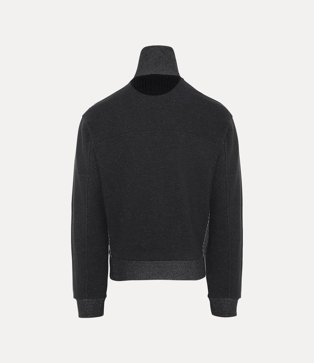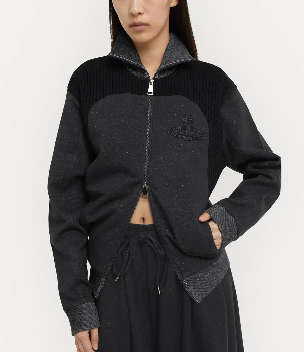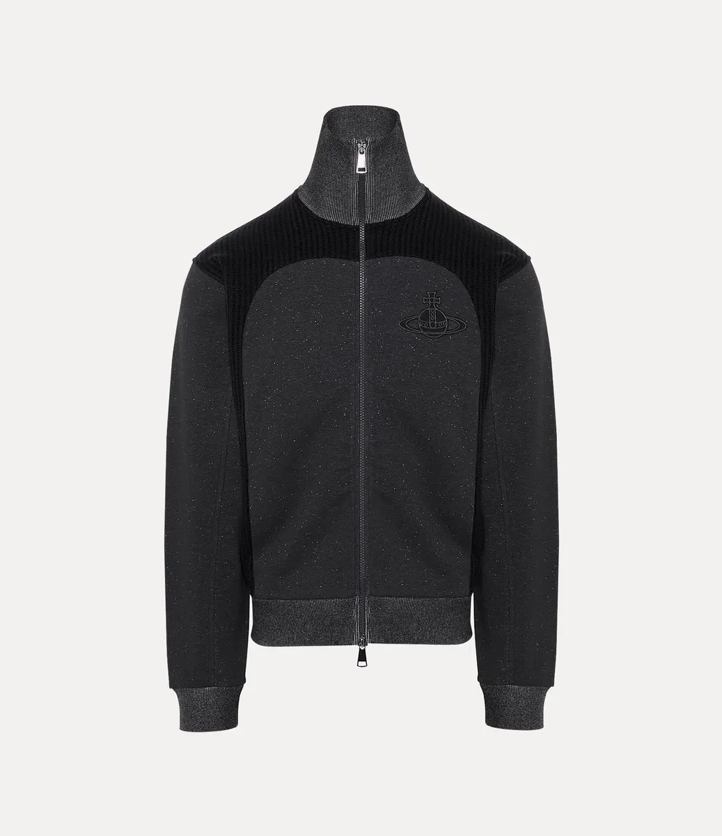 Bu sezonun Alien Track ceketinde, Vivienne Westwood’un 1970’lerin sonunda ve 1980’lerin başında, uyumsuzluğun sembolü ve asi punk estetiğinin ayırt edici özelliği olarak ilk kez kullandığı iki yönlü fermuarlı kapama detayı yeniden kullanılıyor. Yüksek yakalı ve tümüyle nervürlü panellerle detaylandırılmış bu parça, göğüs kısmında tonlu iplikle ince bir şekilde işlenmiş markanın Graffiti orb motifiyle tamamlanıyor.
