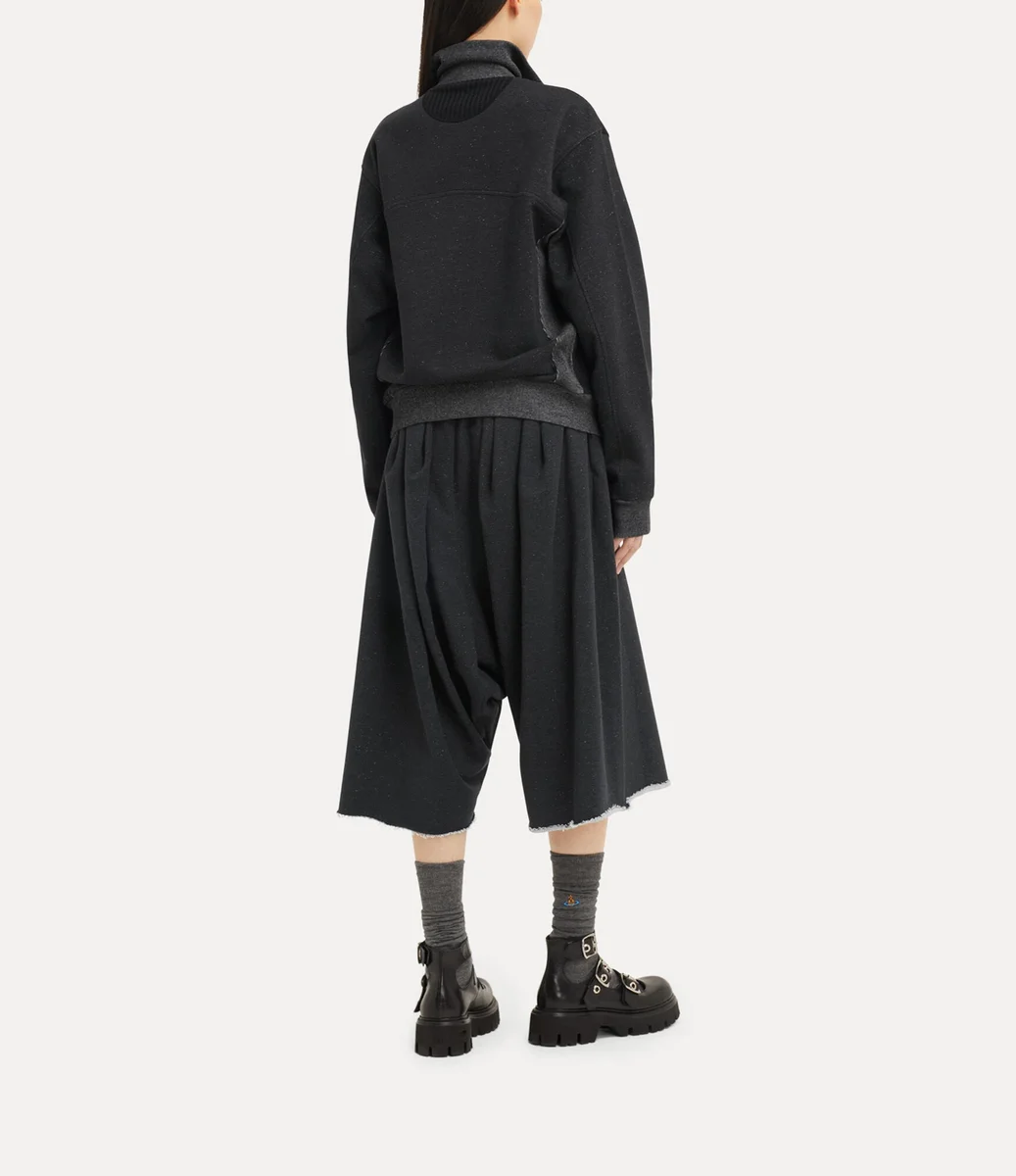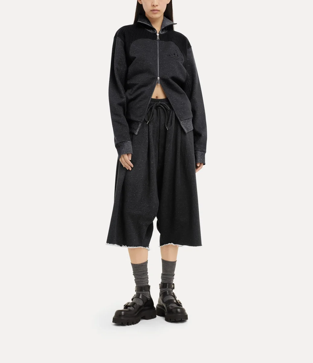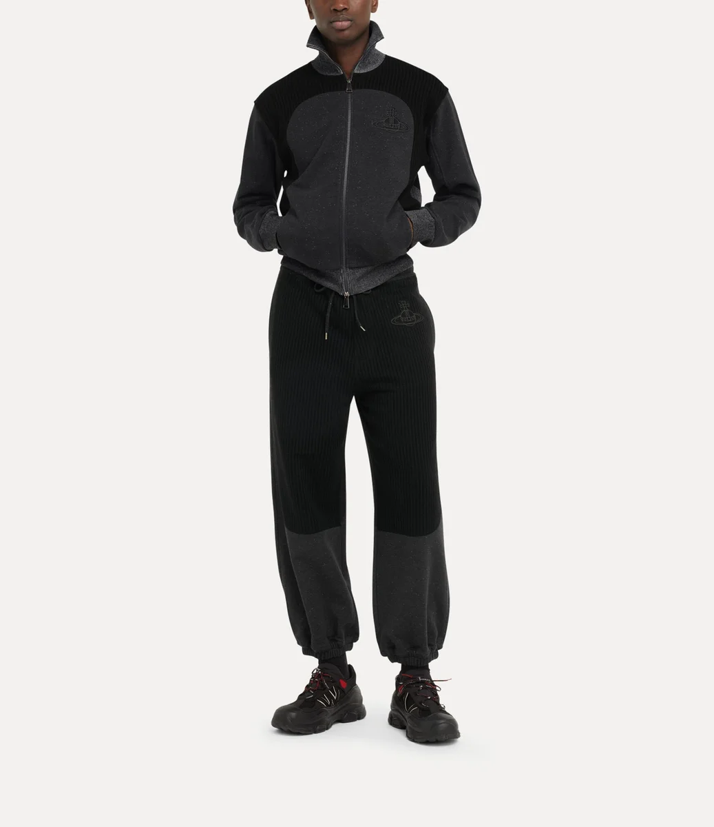 Bu sezonun Alien Track ceketinde, Vivienne Westwood’un 1970’lerin sonunda ve 1980’lerin başında, uyumsuzluğun sembolü ve asi punk estetiğinin ayırt edici özelliği olarak ilk kez kullandığı iki yönlü fermuarlı kapama detayı yeniden kullanılıyor. Yüksek yakalı ve tümüyle nervürlü panellerle detaylandırılmış bu parça, göğüs kısmında tonlu iplikle ince bir şekilde işlenmiş markanın Graffiti orb motifiyle tamamlanıyor.
