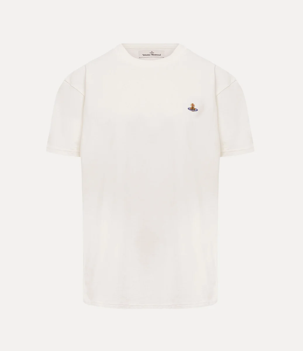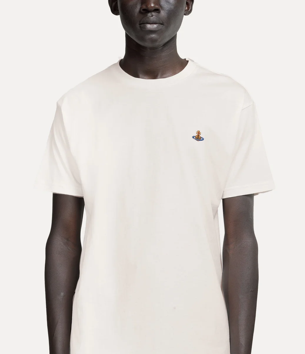 Klasik tişörtümüz, kısa kollu ve yuvarlak yakalı, yumuşak pamuklu bir siluete sahiptir. Parçanın sol göğüs kısmında, Vivienne’in geleneği geleceğe taşıma vizyonunun simgesi olan çok renkli bir küre nakışı bulunmaktadır.