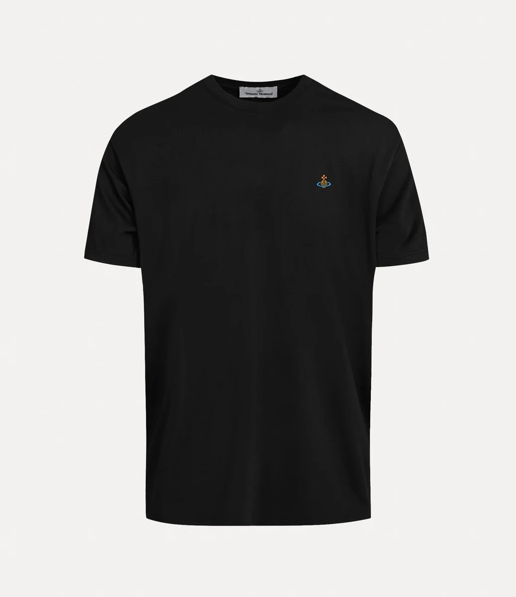 Klasik tişörtümüz, kısa kollu ve yuvarlak yakalı, yumuşak pamuklu bir siluete sahiptir. Parçanın sol göğüs kısmında, Vivienne’in geleneği geleceğe taşıma vizyonunun simgesi olan çok renkli orb nakış bulunmaktadır.