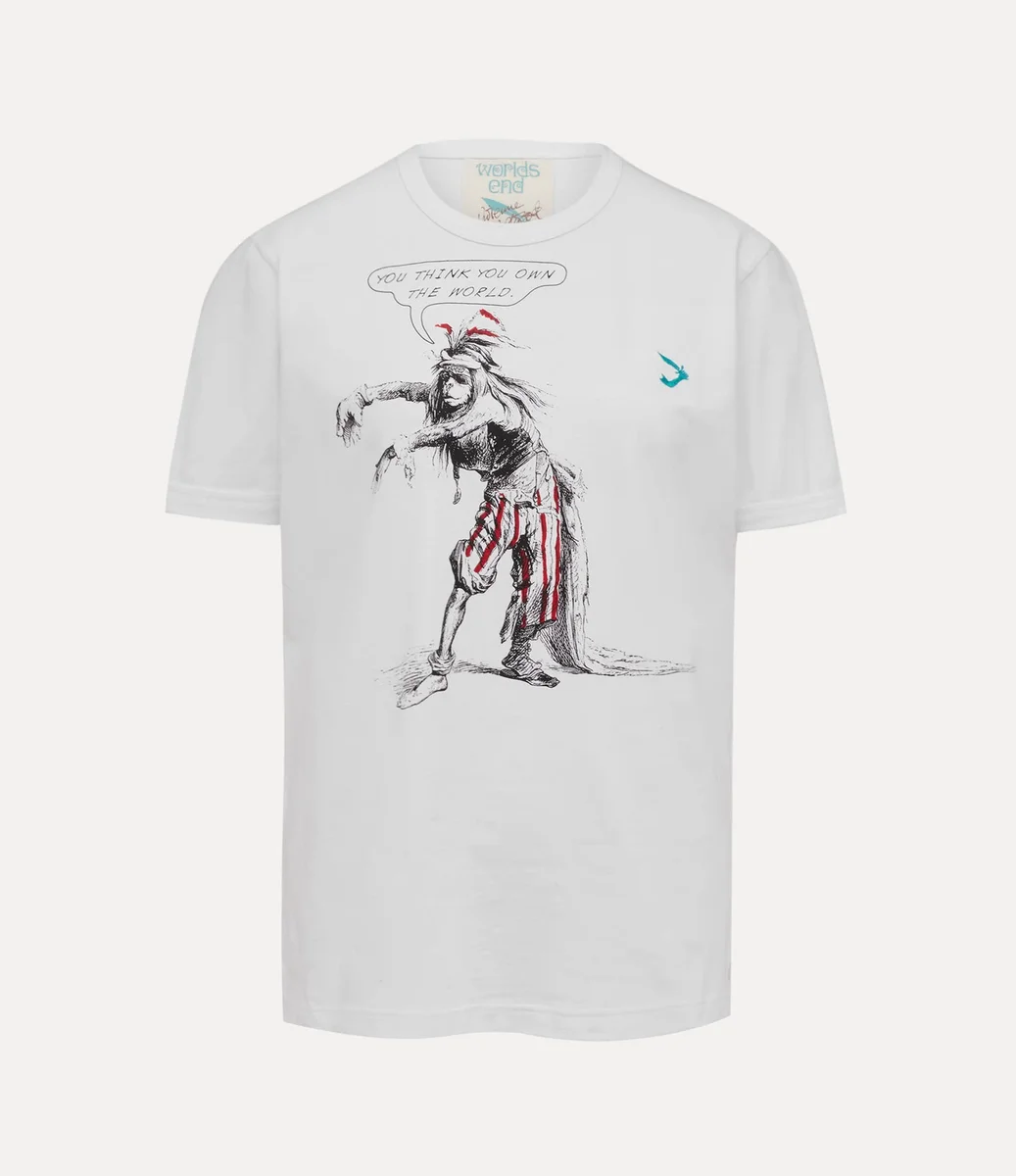 Worlds End Classic tişörtümüz yumuşak pamuktan üretilmiştir, kısa kollu ve yuvarlak yakalıdır. Bu parça, göğsünde arşivden alınan ‘Arm and Cutlass’ nakışıyla ve Vivienne’in oyun kartlarından alınan ‘Own The World’ sanat eseriyle süslenmiştir. Bu tasarım, dünyayı kurtarmak için kültür odaklı bir ekonomik stratejiyi tasvir eder ve geleceği şekillendirmedeki rolümüzü düşünmemizi teşvik eder.