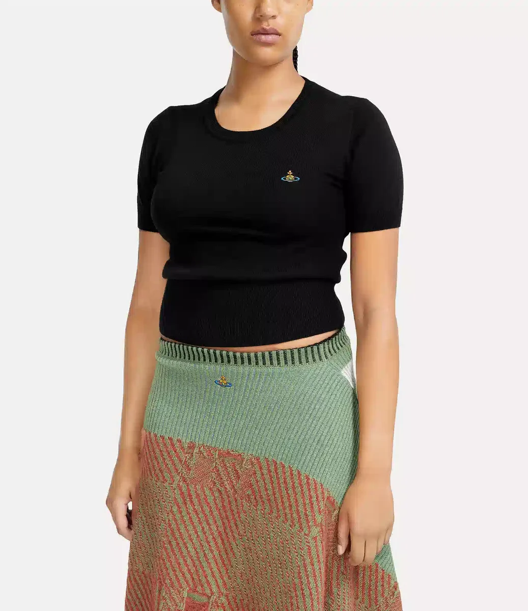 Bea üstümüz bu sezon yenilendi. Klasik koleksiyonumuzun bir parçası olan bu kısa kollu pamuklu kaşmir üst, nervürlü kenarları ve göğsünde çok renkli işlemeli bir küre ile Vivienne’in geleneği geleceğe taşıma vizyonunun simgesi niteliğindedir.