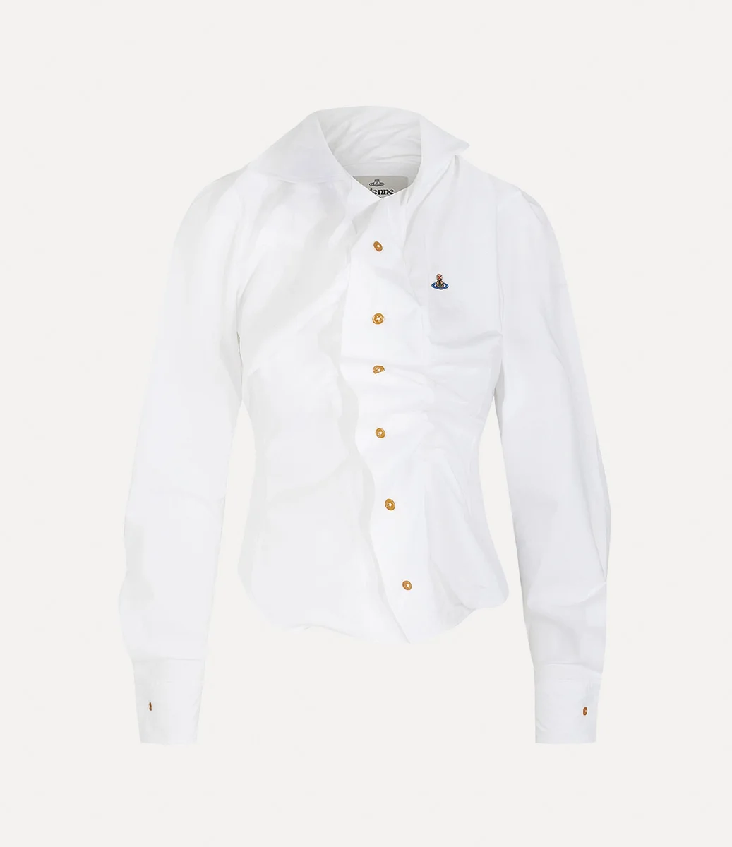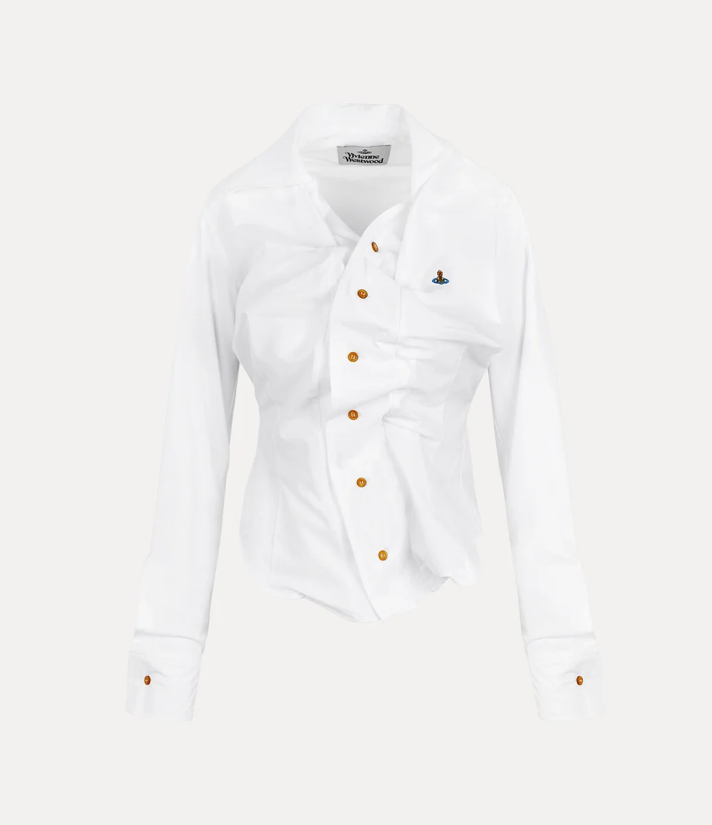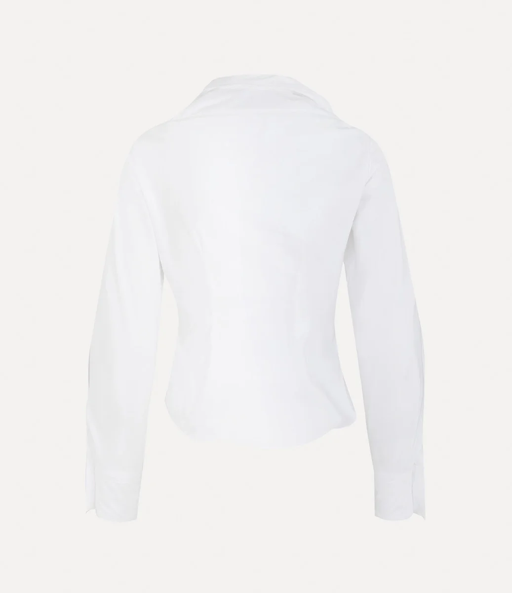 Drunken gömleğimiz, ilk olarak 1983-84 Sonbahar-Kış “Witches” koleksiyonunda tanıtılan “Alcoholic” terzilik sisteminin unsurlarını yeniden canlandırıyor. Bu klasik gömlek, asimetrik etek ucu ve düğmeli kapama ile merkezden kaydırılmış düğme patine sahiptir.