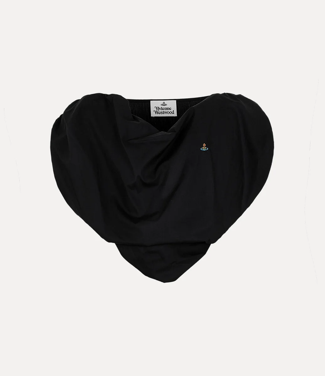 Asimetrik kalp şekli, tarihimiz boyunca birçok koleksiyonda yer alan, markanın imza stili haline gelmiştir. Bu sezonun Kalp üstü, Vivienne’in insanlığa ve gezegene olan sevgisini ifade etmek için kullandığı silueti yeniden canlandırıyor ve tasarımın sol tarafında işlemeli bir küre ile tamamlanıyor.