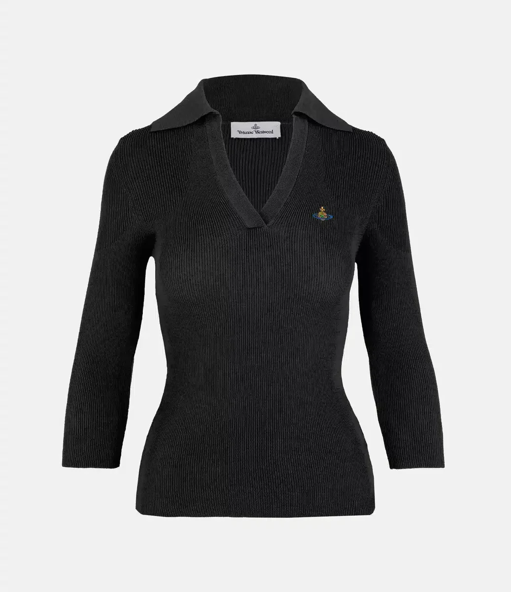 Marina polo süveterimiz, polo esintili yakası ve üç çeyrek uzunlukta kolları ile tam oturan bir siluete sahiptir. Bu parça, geleneği simgeleyen markanın imza niteliğindeki küre nakışıyla vurgulanmış, geleceği temsil eden Satürn’ün göksel halkalarıyla çevrili, baştan sona nervürlü bir yüzeye sahiptir.