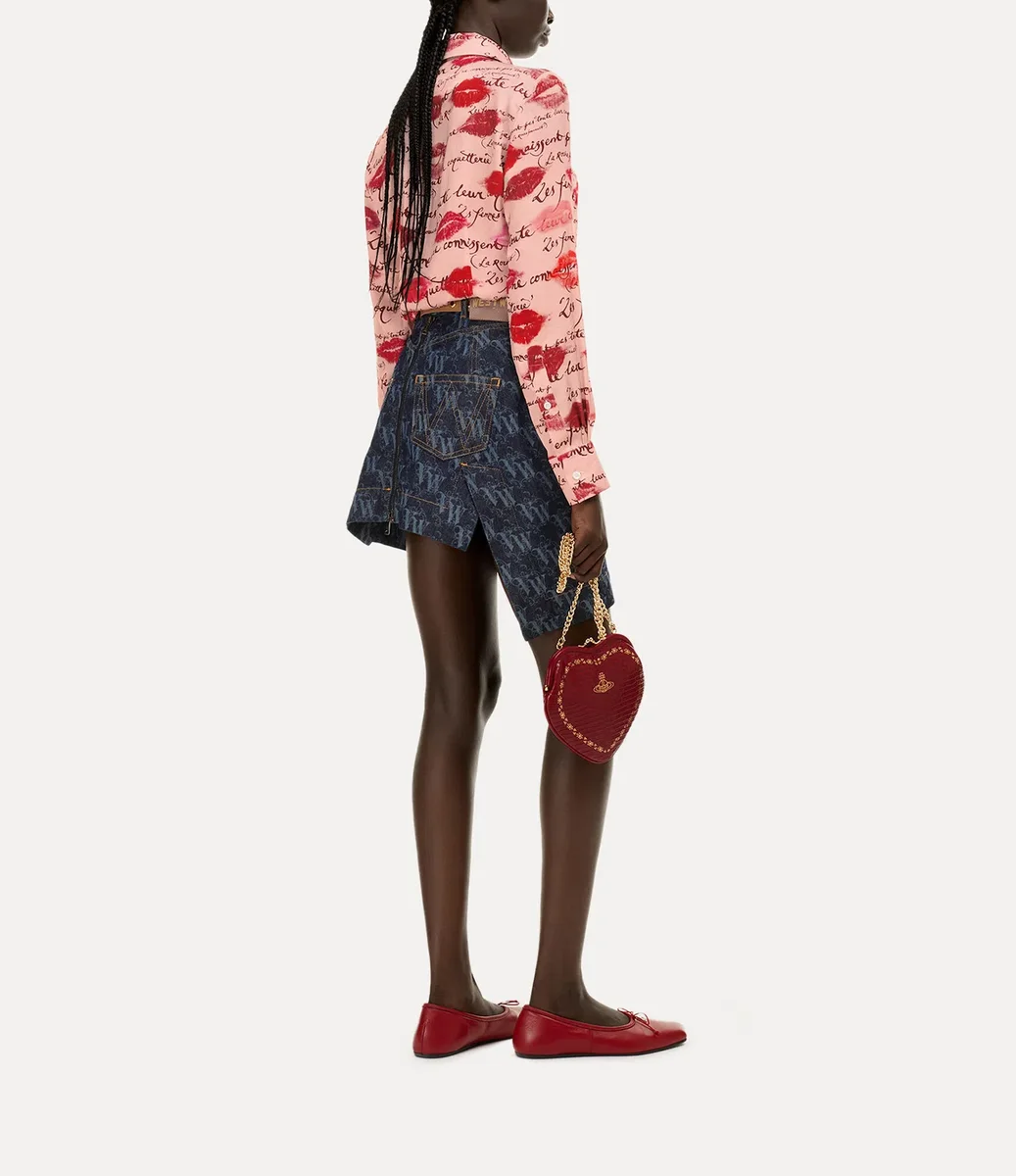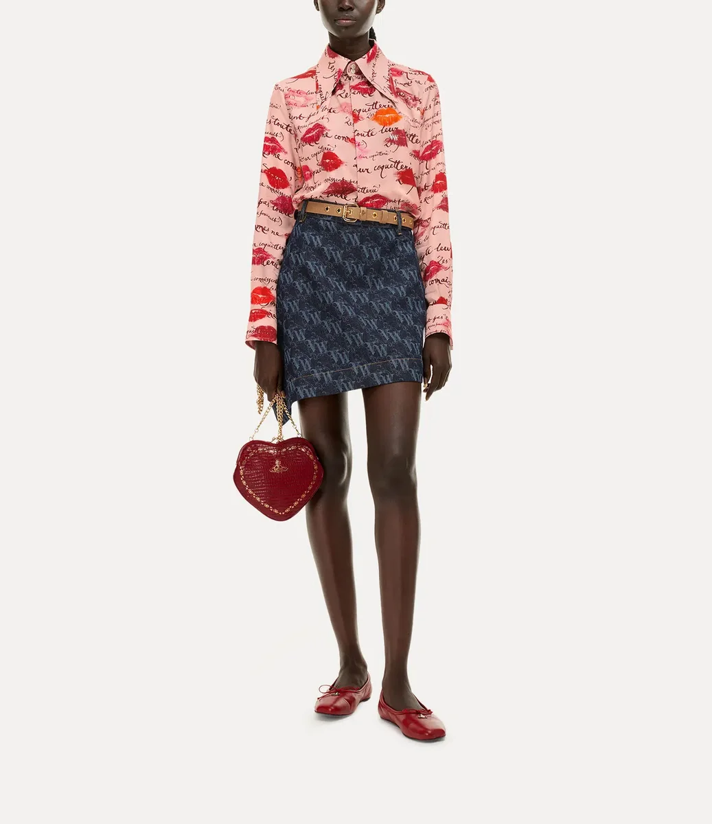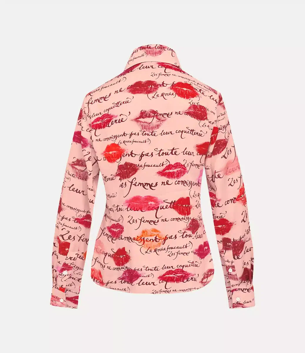 Keman Smokin Gömleğimiz, markanın imzası niteliğindeki iki düğmeli yakaya sahiptir ve ‘Boudoir’ parfüm ambalajından esinlenilen ‘Kisses’ sanat eseriyle süslenmiştir. Bu parça, abartılı sivri yakaya sahiptir ve göğüs ve bel kısmında hassas dartlarla tamamlanarak şekillendirilmiş, konturlu bir görünüm sunar.