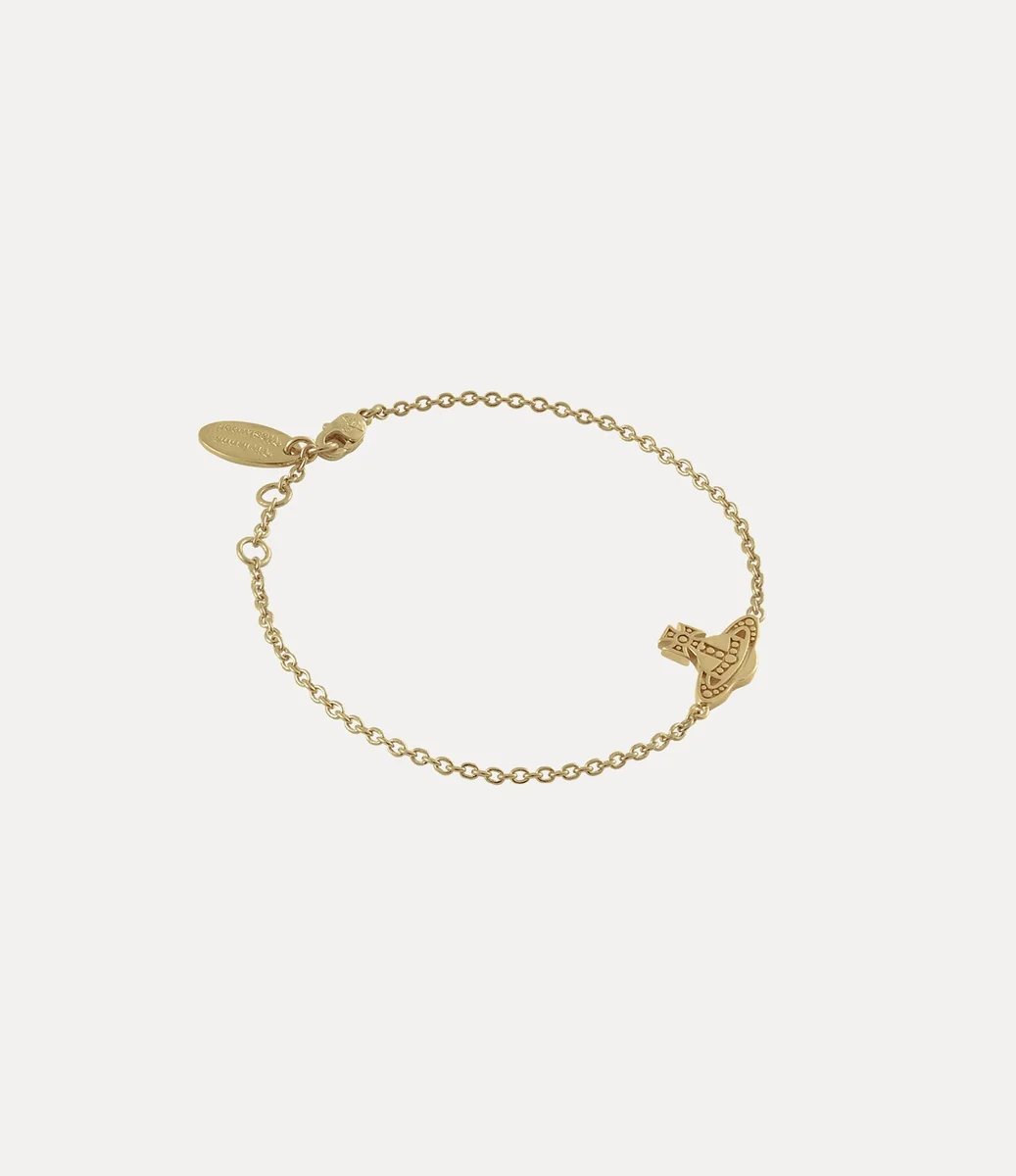Marinetta bileziğimiz altın rengi metalden üretilmiştir ve ortasında markanın imza niteliğindeki küre motifi yer almaktadır. Tasarım, el yapımı bir görünüm kazandıran hafifçe bastırılmış, boncuk benzeri bir dokuya sahiptir, oyulmuş detaylar ise haç şeklindeki üst kısmın ve Satürn halkasının konturlarını vurgulamaktadır.