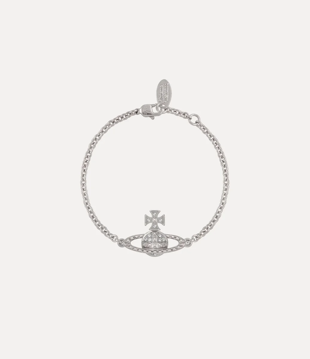 Mayfair Bas Relief bileziğimiz bu sezon yeniden tasarlandı ve gümüş tonlu kaplama ve beyaz kristal süslemelerle tamamlandı. Bu parça, Vivienne’in çok sevdiği Londra’nın Mayfair semtinden adını almıştır. Piramit çivi detayları ve Vivienne’in geleneği geleceğe taşıma vizyonunun simgesi olan kabartma küre ile süslenmiştir.