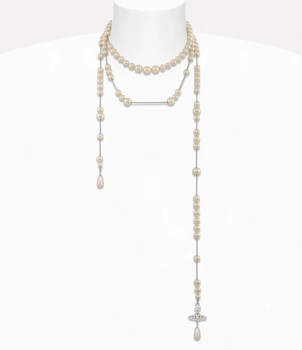 İnciler, evin ikonografisinin vazgeçilmez bir unsurudur ve ihtişam ve lüks hissi uyandırır. Broken Pearl kolye, Rokoko sanatının dekoratif motiflerinden ilham alan 1996-97 Sonbahar-Kış koleksiyonu “Storm in a Teacup” ile ilk kez tanıtılmıştır. Bu parça, Vivienne’in imzası niteliğindeki “Broken” unsurlarını taşıyan cam incilerle süslenmiş olup, “tekdüzelik ve minimalizmin dehşetiyle yüzleşen” kadınlar için tasarlanmıştır.