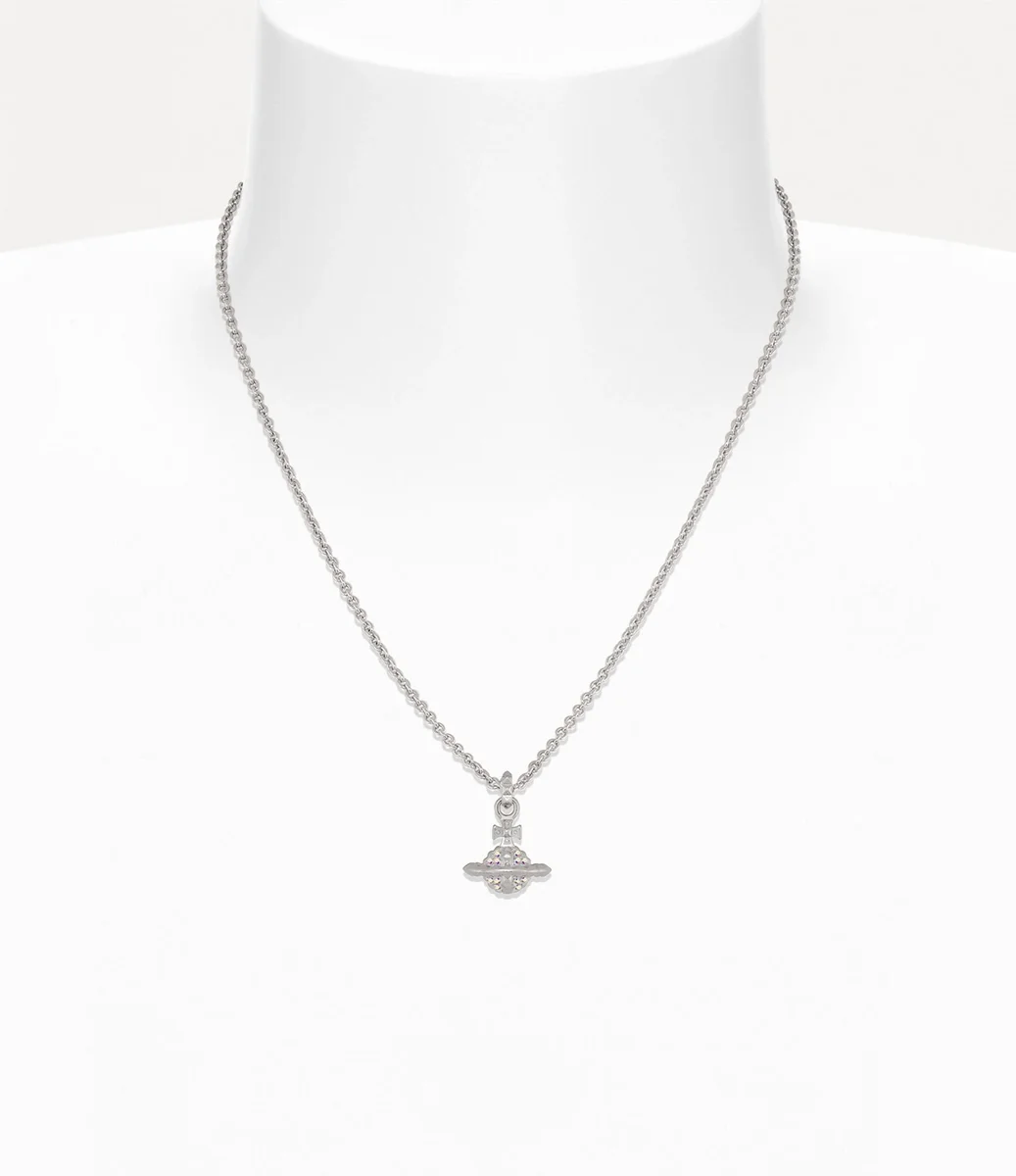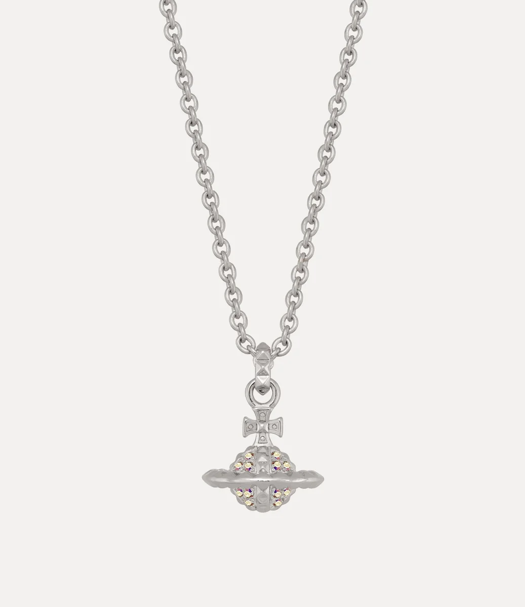 Küçük Mayfair Orb Kolye Tasarımımız, Vivienne’in geleneği geleceğe taşıma vizyonunun simgesi olan imza orb amblemimizden ilham almaktadır. Tasarımın merkezinde, üç boyutlu orb kolye bulunur. Kolye, yanardöner taşlarla süslenmiş ve çivi detaylarıyla vurgulanmış olup, markanın imza punk yaklaşımını yansıtmaktadır.