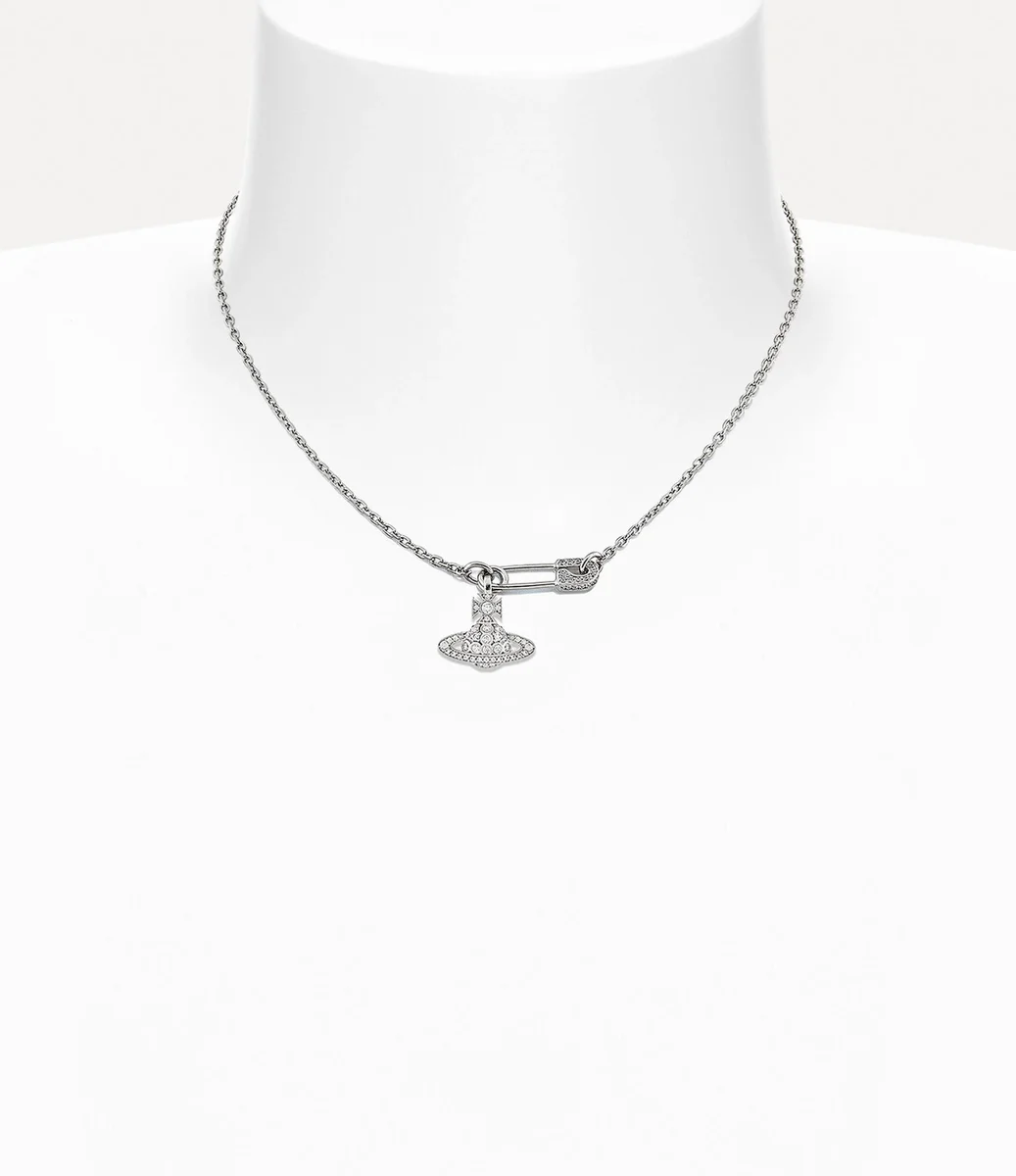 Lucrece Kolye, cilalı gümüş tonlarında kristal süslemeli detaylara sahiptir ve ikonik küre tasarımının yanı sıra bizim imza güvenlik pimi motifimizle vurgulanmıştır. Zamanın ötesinde bir uyumsuzluk sembolü olan emniyet pimi, Vivienne’in punk esintili kendine özgü vizyonunu yansıtıyor.