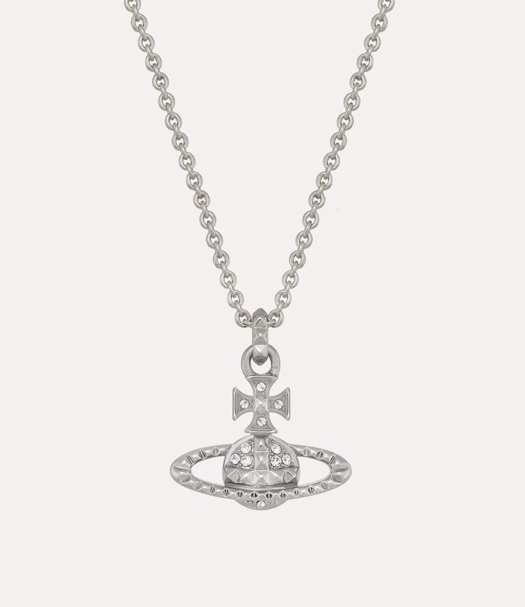 Mayfair Bas Relief Pendant kolye, bu sezon gümüş kaplama ve ışıltılı kristal süslemelerle geri dönüyor. Parça, markanın geleneği geleceğe taşıma vizyonunun simgesi olan küre şeklindeki silueti ve Vivienne’in imzası olan punk yaklaşımına uygun olarak, uyumsuzluğun sembolü olan çivili detaylarla tamamlanıyor.