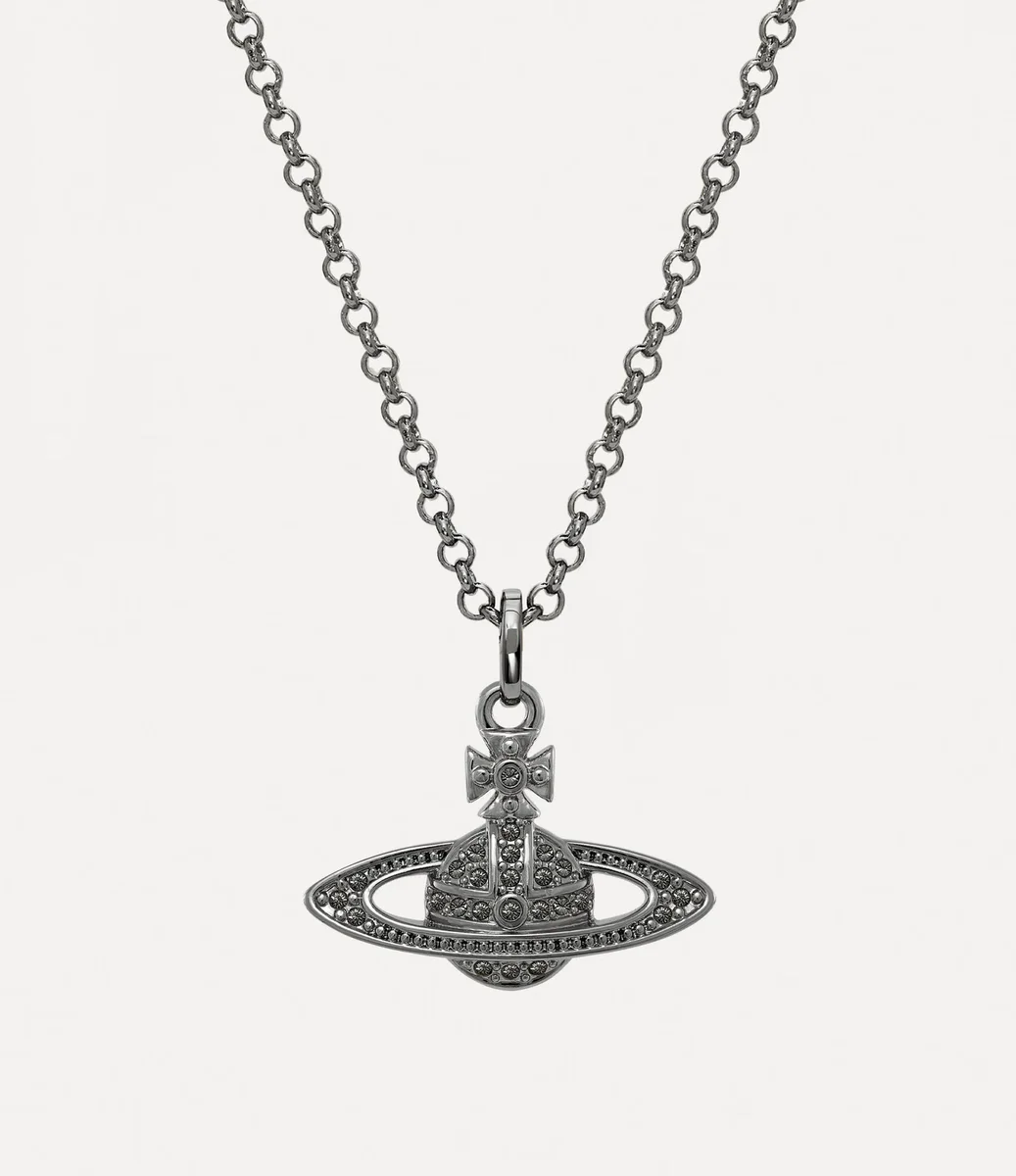 Küre, markanın ikonografisinin vazgeçilmez bir unsurudur ve Vivienne’in geleneği geleceğe taşıma vizyonunu yansıtmaktadır. Mini Bas Relief Pendant kolyemizin tasarımının merkezinde kristal kaplı bir küre bulunur ve klasik karabina tokasının üzerinde oyulmuş bir etiket yer alır.