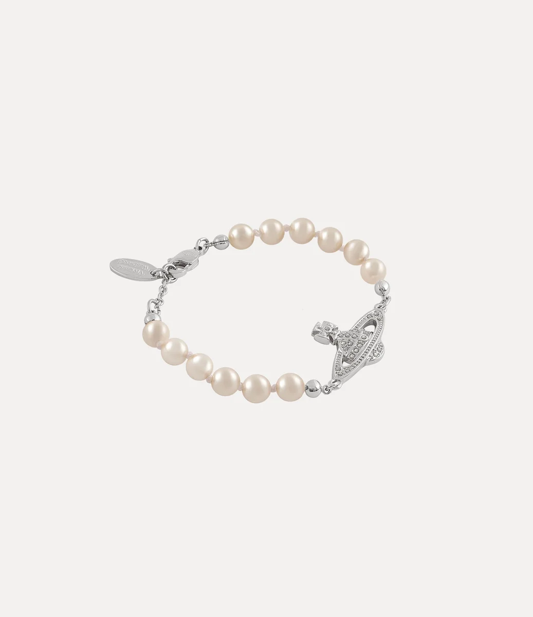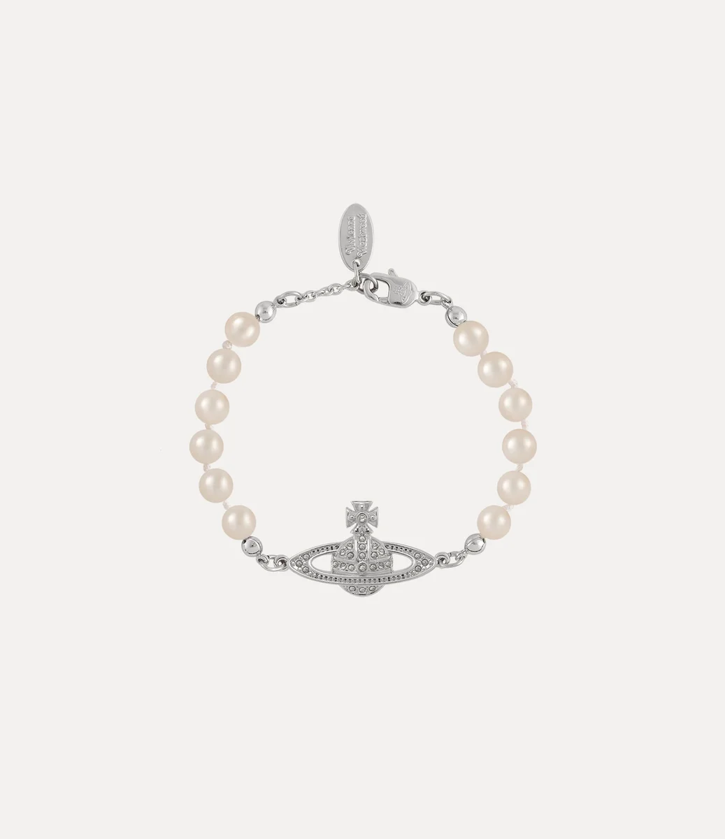 İnciler, lüks ve isyanı simgeleyen, markanın imajının önemli bir bileşenidir. Mini Bas Relief Pearl bilezik, tasarımın ortasında kristal kaplı bir küre motifiyle süslenmiş bir dizi cam bazlı inci sunar ve Vivienne’in geleneği geleceğe taşıma vizyonunu yansıtmaktadır.