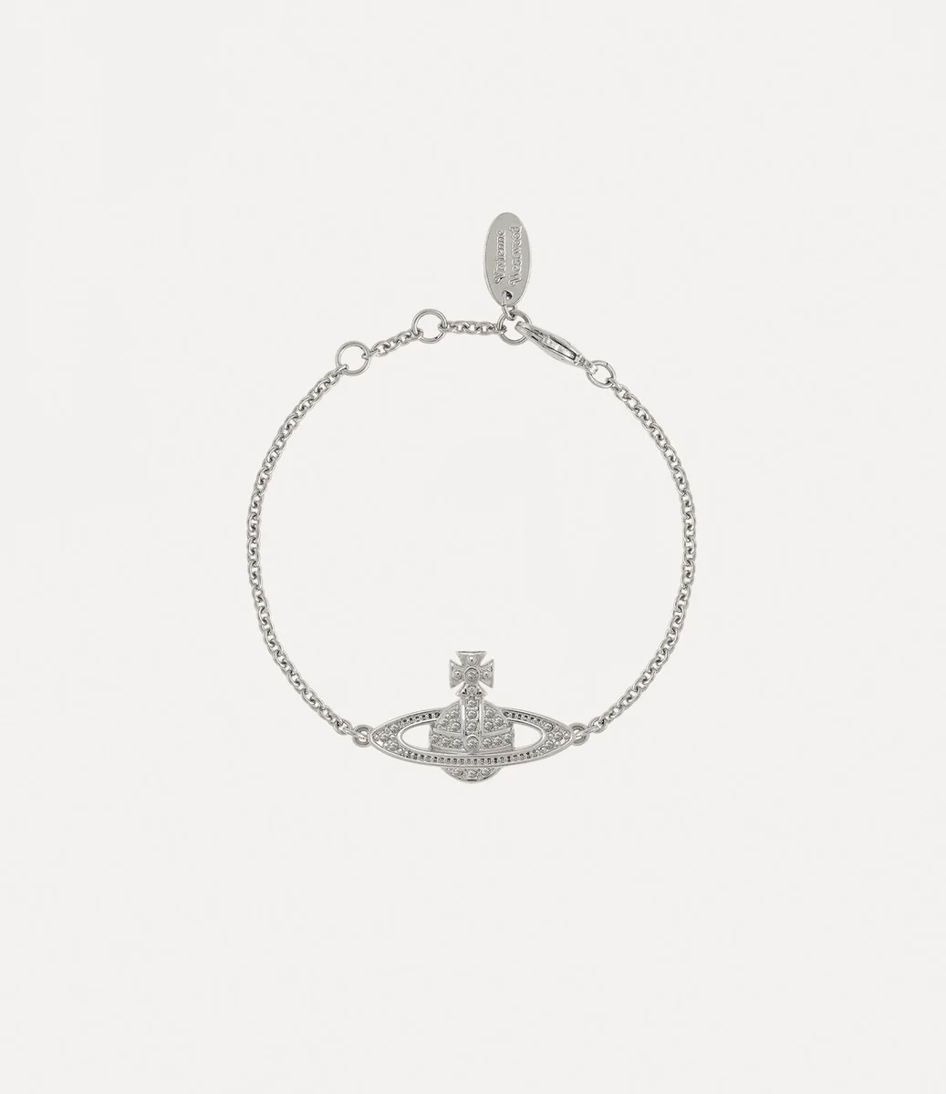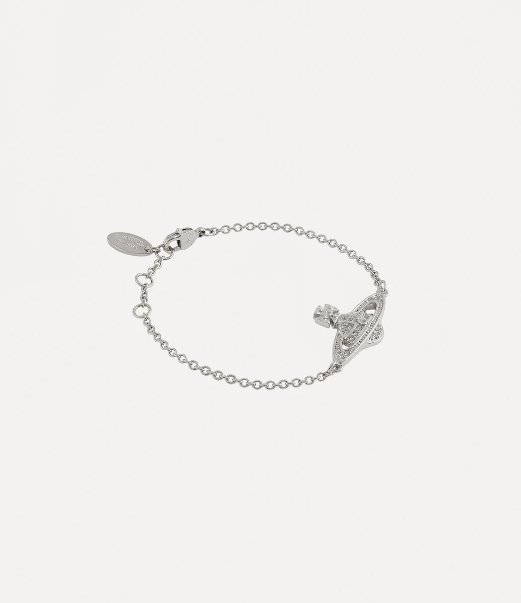 Mini Bas Relief Chain bileziğimiz, markanın imza motifinden ilham alan, ortasında belirgin bir gümüş tonlu küreye sahiptir. Pavé ayar beyaz kristallerle süslenmiş olan bu parça, güvenli karabina toka bağlantısında harf oyulmuş oval bir etiketle tamamlanmıştır.
